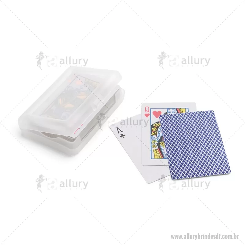 Baralho de 54 cartas em papel plastificado. Fornecido numa caixa rígida / estojo em PP. Medidas: 100 x 70 x 20 mm Peso do Produto (g.): 94 - - ALLDFJOG010