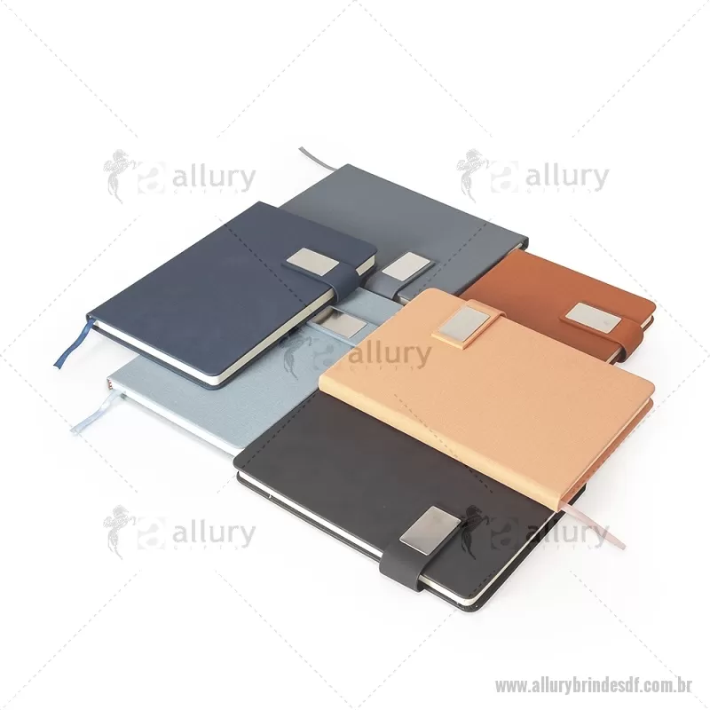 Caderneta de capa dura confeccionada em couro sintético, com acabamento elegante e fecho magnético para maior praticidade. Possui placa metálica personalizável na capa, ideal para aplicação de logotipo ou nome. Conta ainda com marca-página em fita de cetim e aproximadamente 96 folhas internas brancas pautadas, proporcionando organização e conforto na escrita. - - ALLDFBLC281