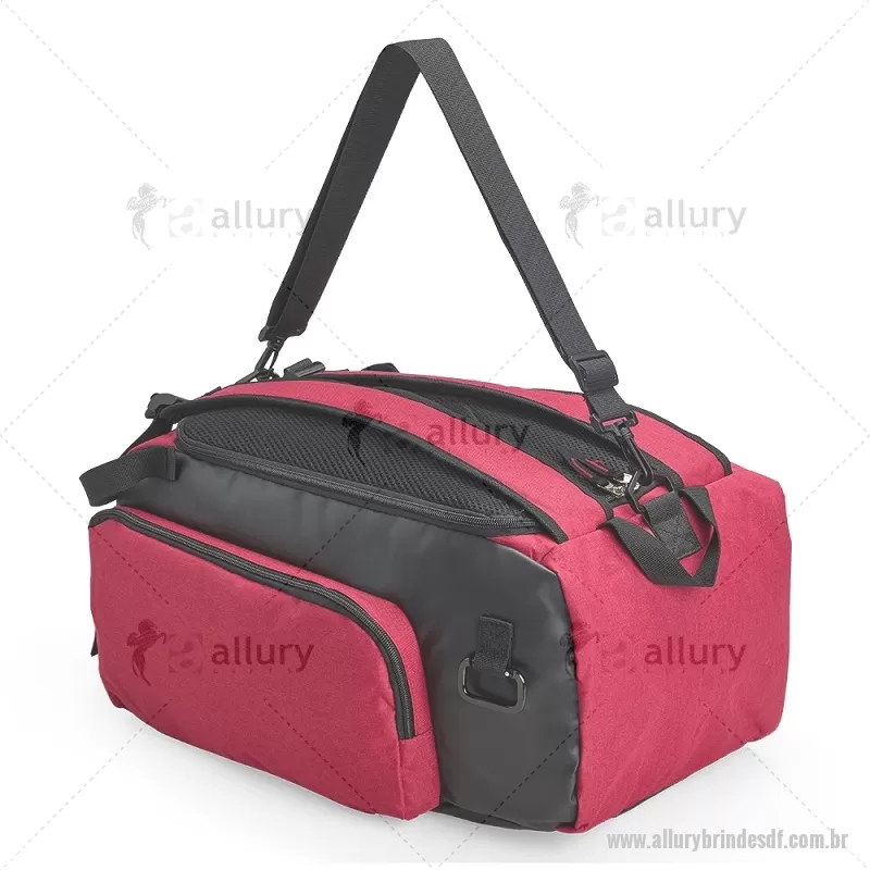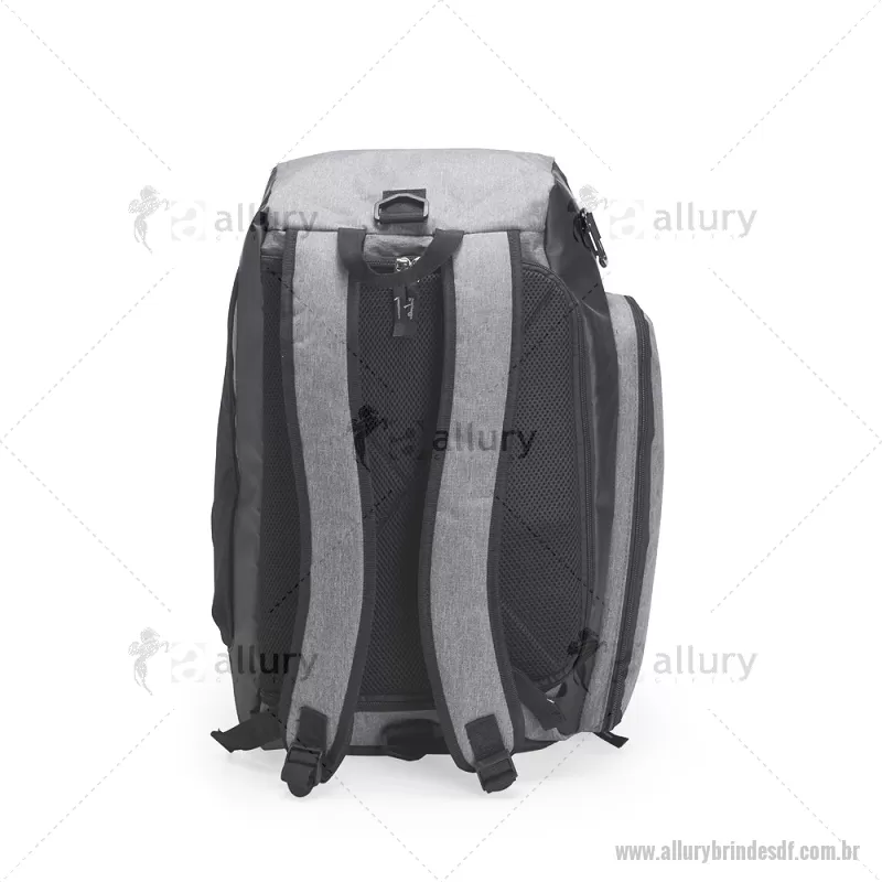 Bolsa esportiva em poliéster resistente à água, com detalhes emborrachados e capacidade de até 40 litros. Possui três compartimentos principais, incluindo bolso para notebook de até 13” e espaço separado para calçados. Conta com bolso lateral em malha, alça transversal ajustável e removível, além de alças acolchoadas e área traseira com espuma respirável, permitindo uso como mochila. - - ALLDFBOL050