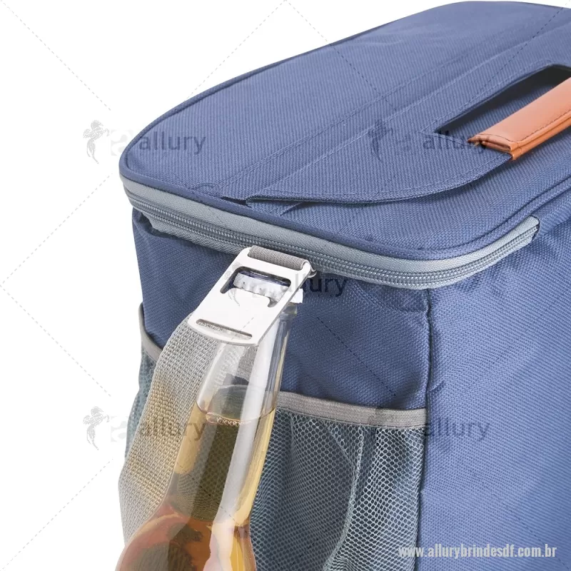 Bolsa térmica de 11 litros feita em Oxford impermeável, com detalhes em couro sintético e revestimento interno em PEVA para melhor conservação da temperatura. Possui bolso frontal aberto, dois bolsos laterais em tela, alça de mão, alça transversal ajustável e abridor de garrafas em inox acoplado na lateral. Prática e ideal para uso diário. - - ALLDFBT098