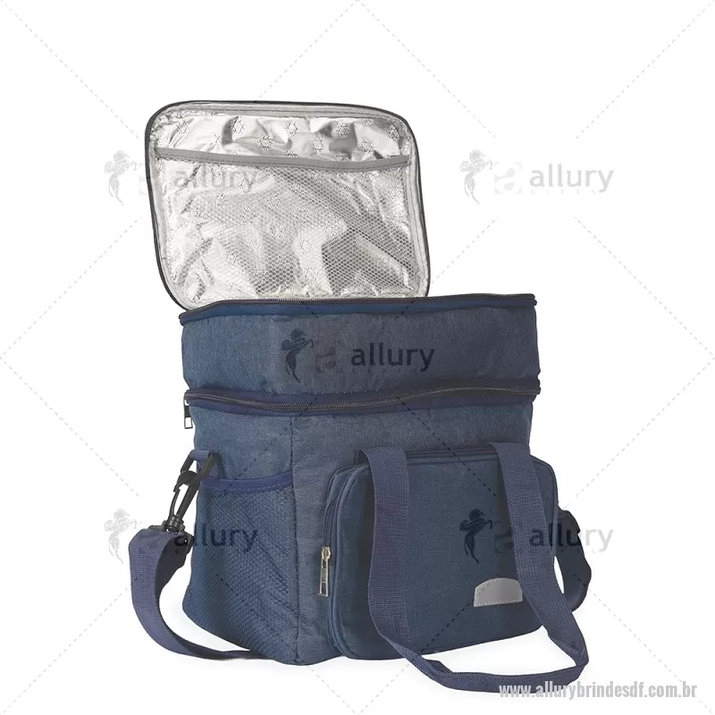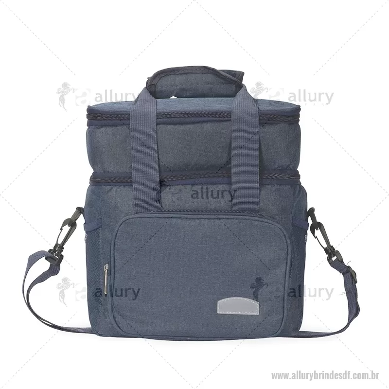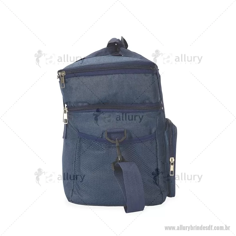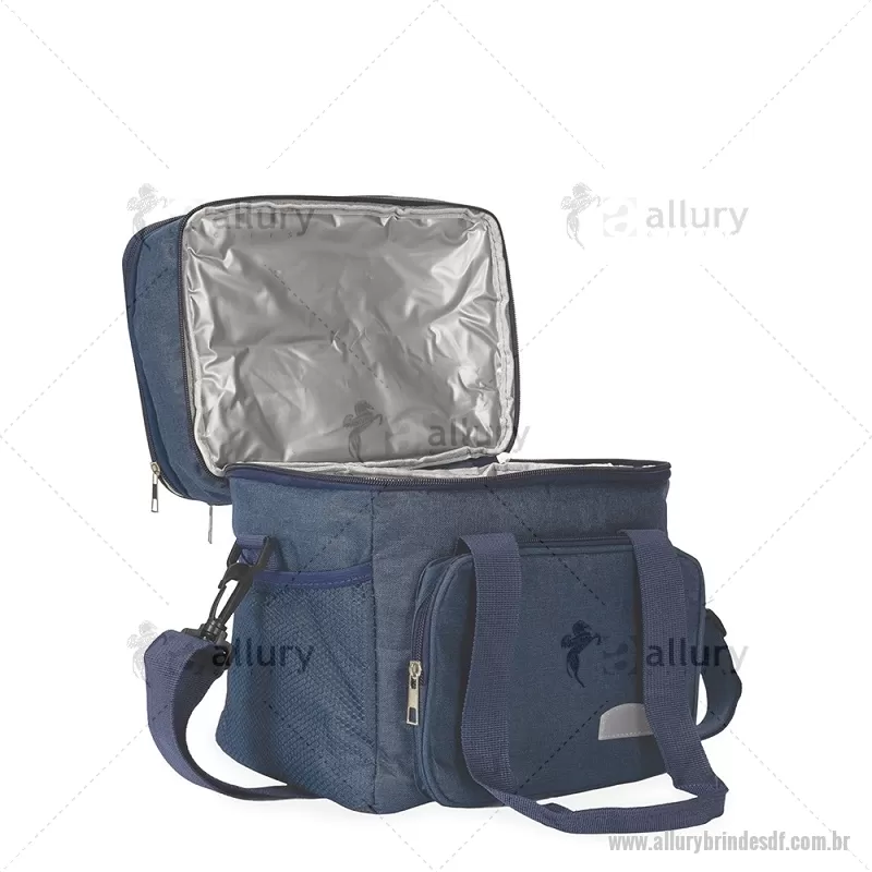 Bolsa térmica de 15 litros feita em Oxford resistente à água, com revestimento interno em PEVA e tampa com isolamento em alumínio. Conta com bolso frontal, dois bolsos laterais em tela, alças de mão com suporte de junção e alça transversal removível. Prática e ideal para manter alimentos e bebidas na temperatura por mais tempo. - - ALLDFBT105
