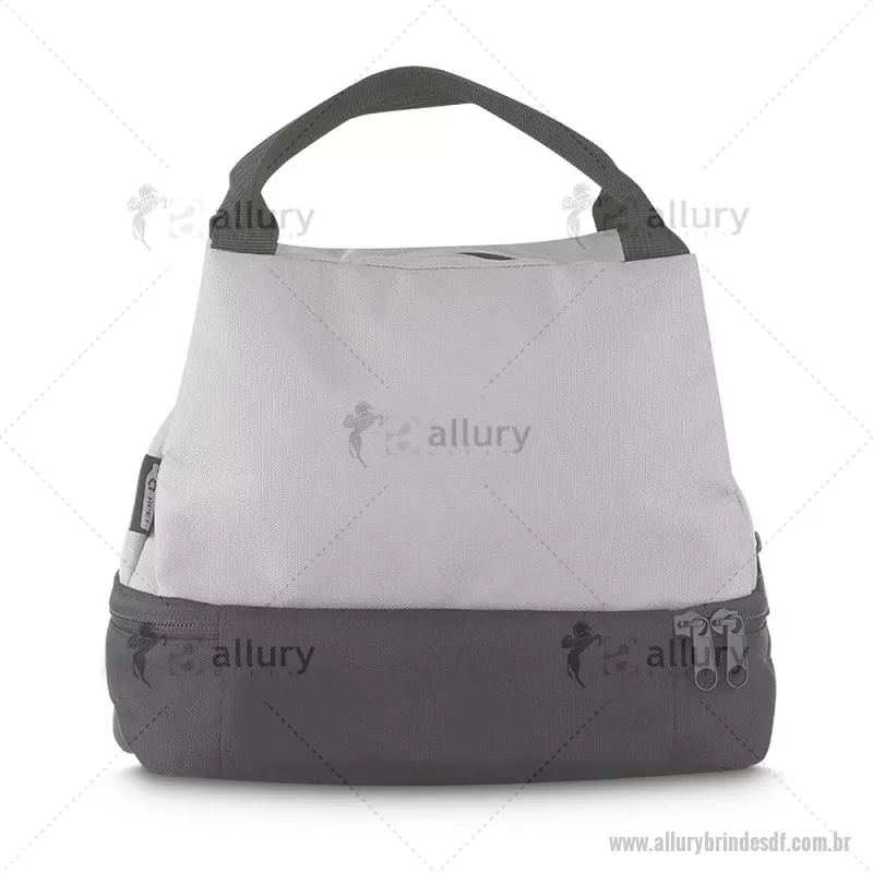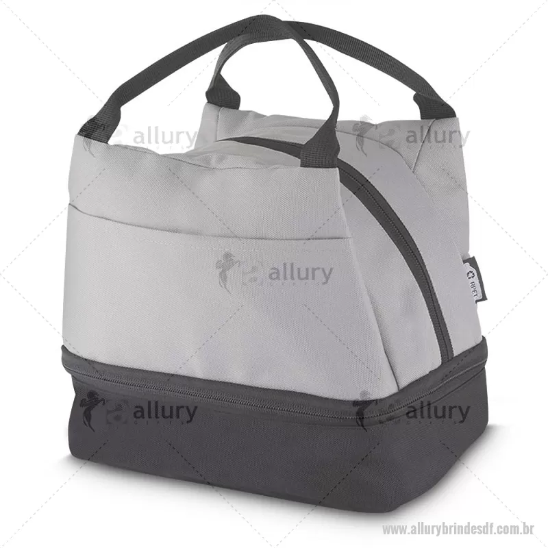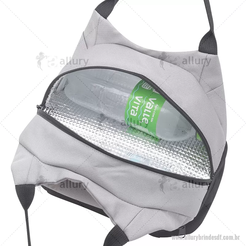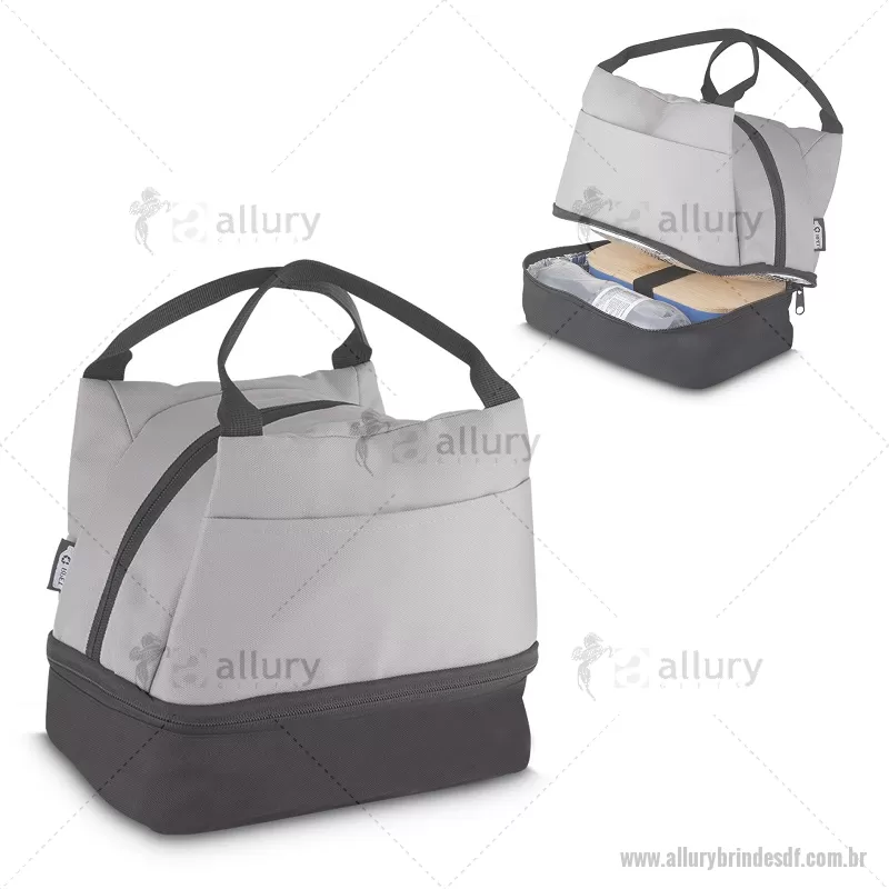 Bolsa térmica 7litros em tecido PET Reciclado com 2 compartimentos térmicos costurados, bolso frontal e alça de mão. Dimensão Produto: 21x24x15cm (AxLxP) Peso do Produto: 0,130kg Volume: 7L - - ALLDFBT094