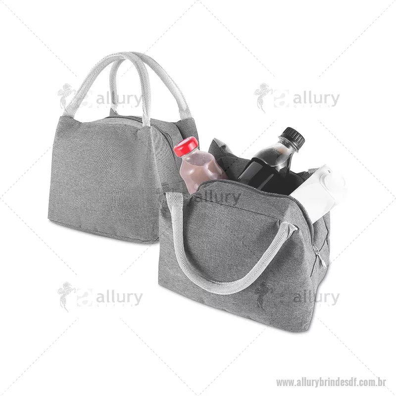 Bolsa térmica com alça de mão, confeccionada em poliéster 300D na parte externa. Possui interior em alumínio com manta térmica, auxiliando na conservação da temperatura dos alimentos e bebidas. Modelo costurado, sem solda, conta com fechamento em zíper com puxador em formato de colher e capacidade aproximada de 5,6 litros. - - ALLDFBT119