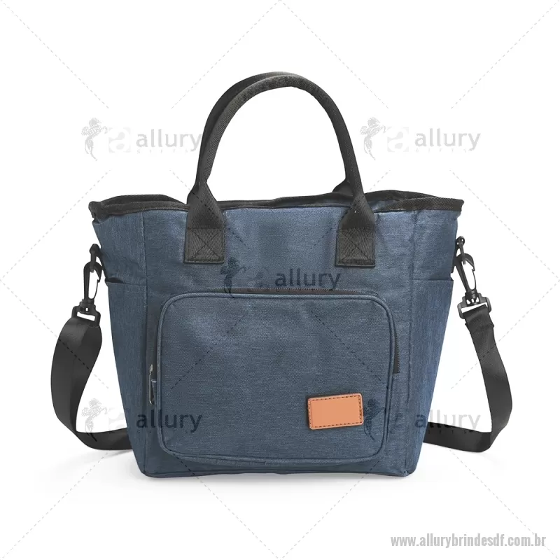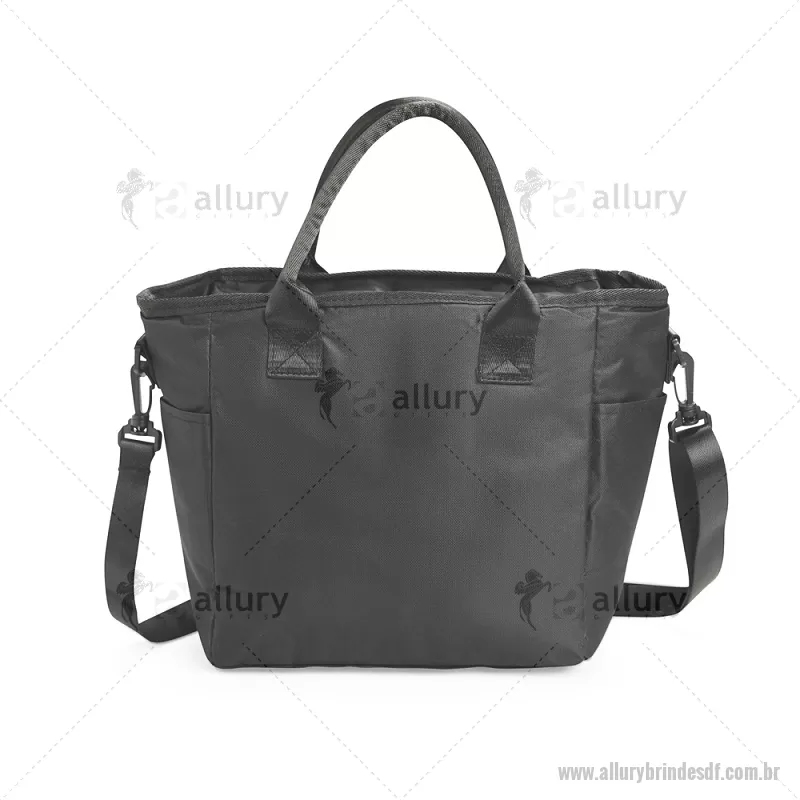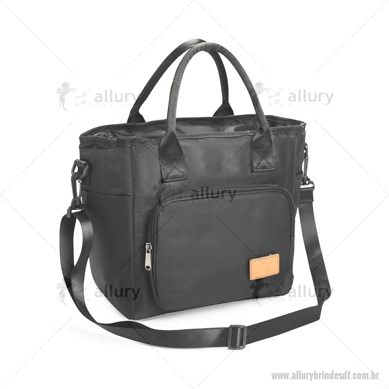 Bolsa térmica de 13 litros feita em Oxford resistente à água, com revestimento interno em PEVA e fechamento em zíper. Possui bolso frontal com plaquinha em couro sintético, dois bolsos laterais, alças de mão fixas e alça transversal regulável com mosquetões. Funcional e ideal para uso diário. - - ALLDFBT104
