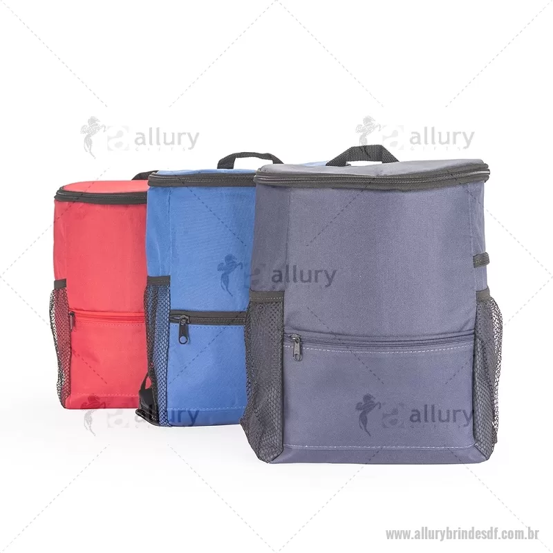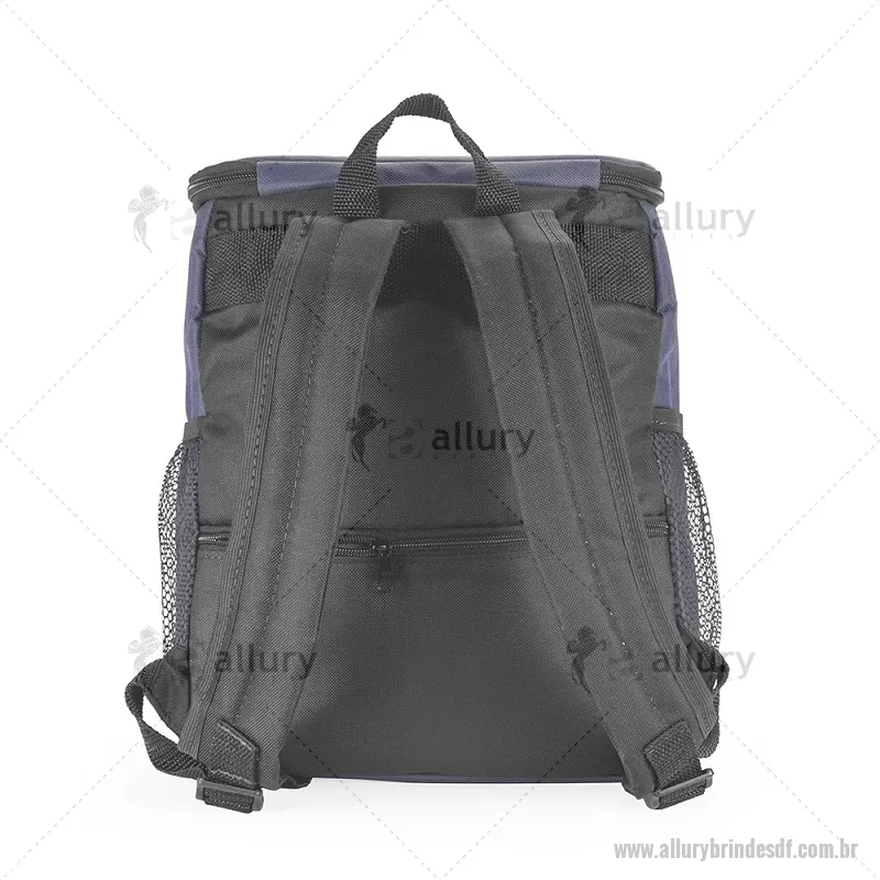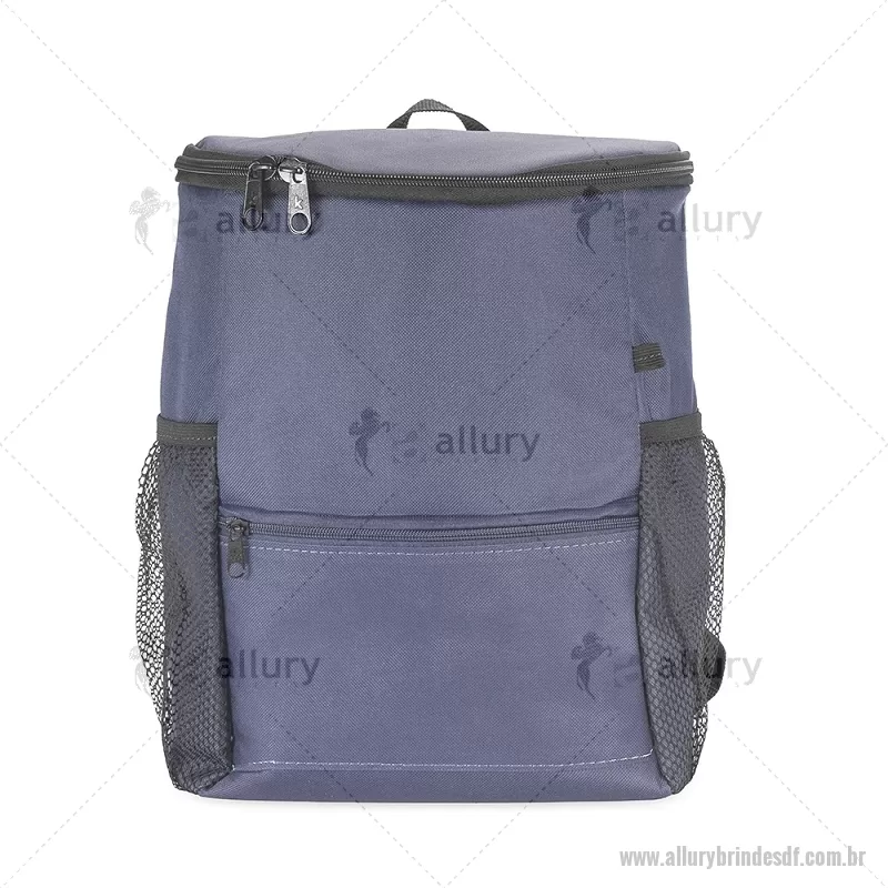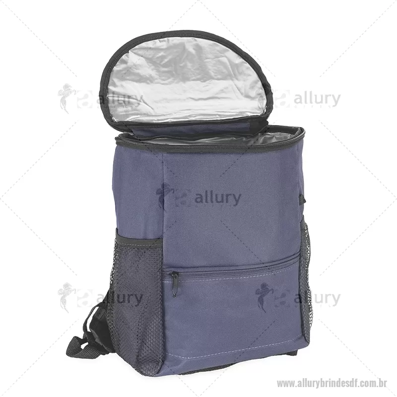 Mochila térmica de 10 litros feita em nylon resistente à água e revestimento interno em PEVA atóxico antivazamento, ideal para manter alimentos e bebidas frescos. Possui bolso frontal e traseiro com zíper, além de bolsos laterais em tela para garrafas. Prática e versátil para trabalho, estudos ou uso diário. - - ALLDFBT096