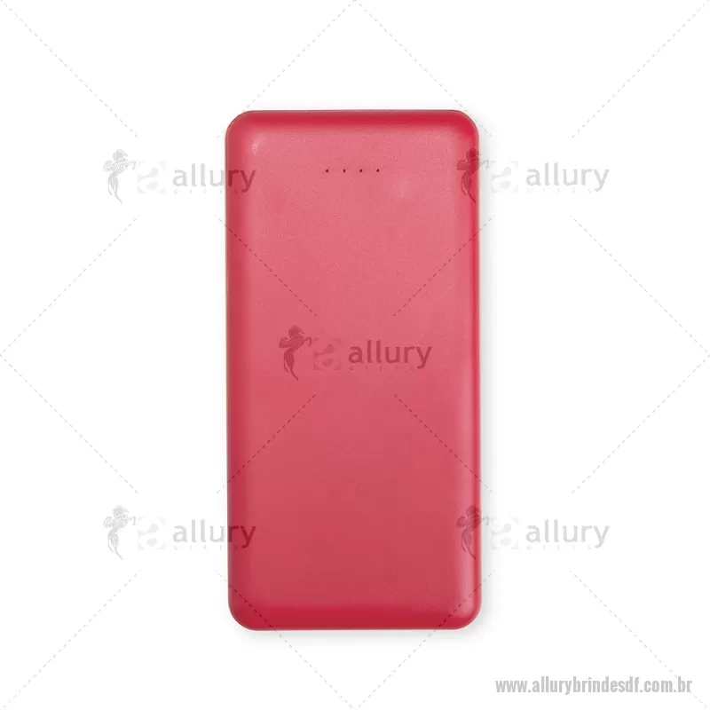 Power Bank 10.000mAh com Indicador LED Descrição: Power bank com estrutura em plástico com potência de 10.000mAh e quatro luzes de LED para indicar o status de carga do próprio carregador portátil. Possui quatro entradas diferentes: duas portas USB, uma porta Micro USB e outra USB-C. Altura : 14 cm x Espessura : 1,5 cm x Comprimento : 7 cm Peso aproximado (g): 243 - - ALLDFTEC531