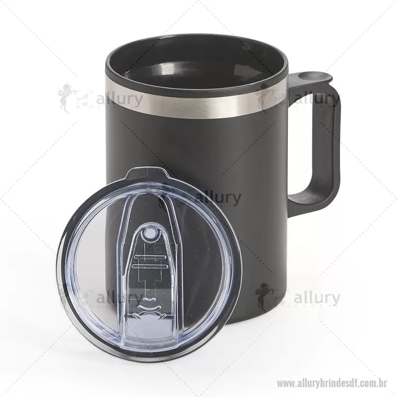 Caneca de 375 ml com interior plástico e revestimento externo em inox, que evita o aquecimento das mãos. Possui tampa com bocal e trava de segurança, além de base emborrachada antiderrapante. Prática e ideal para o dia a dia. - - ALLDFCAN098