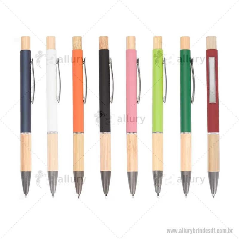 Caneta esferográfica azul 1,0 mm com corpo metálico, detalhes em bambu e acionamento por clique. Leve e confortável, proporciona escrita precisa no dia a dia. - - ALLDFCMT296
