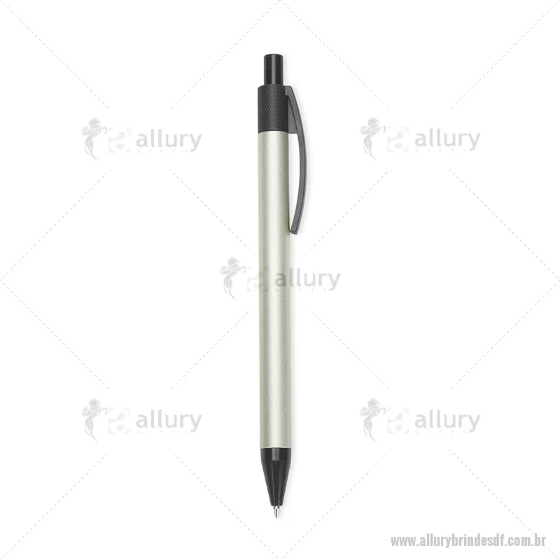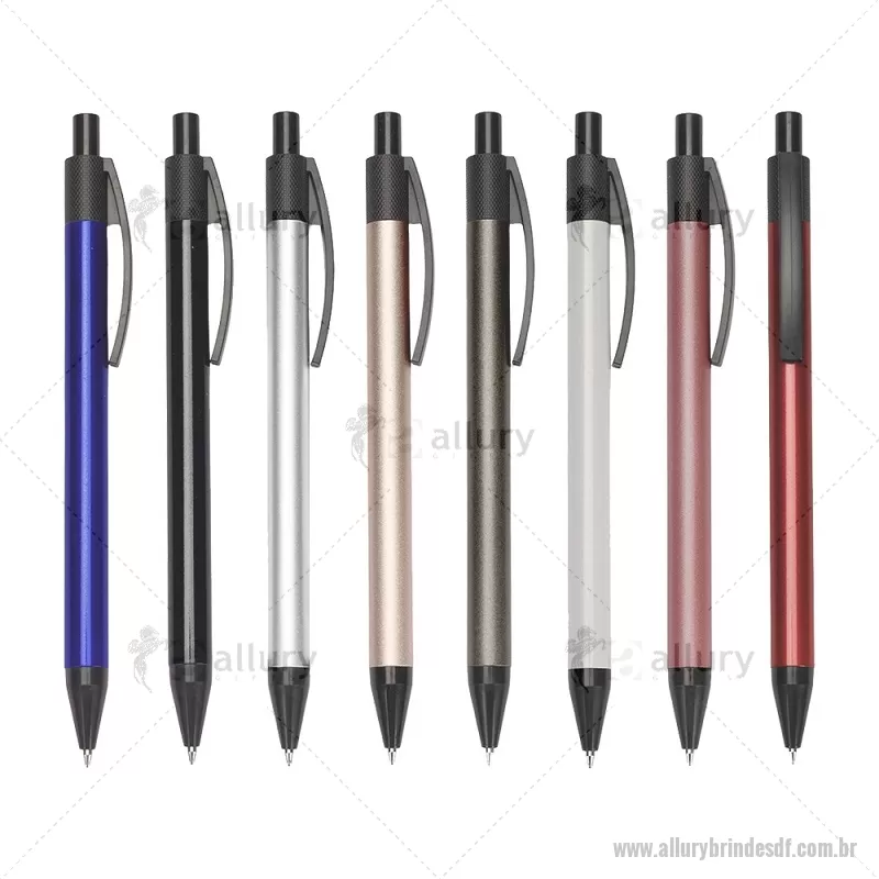 Caneta com corpo em metal, ponteira e clip em plástico, equipada com acionamento por clique. Possui carga esferográfica azul de 1,0 mm, garantindo escrita suave, leve e precisa para o uso diário. - - ALLDFCMT301
