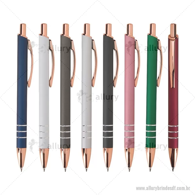 Caneta em metal com acionamento por clique e carga esferográfica azul de 1,0 mm. Leve e confortável, garante escrita precisa e uso prático no dia a dia. - - ALLDFCMT303