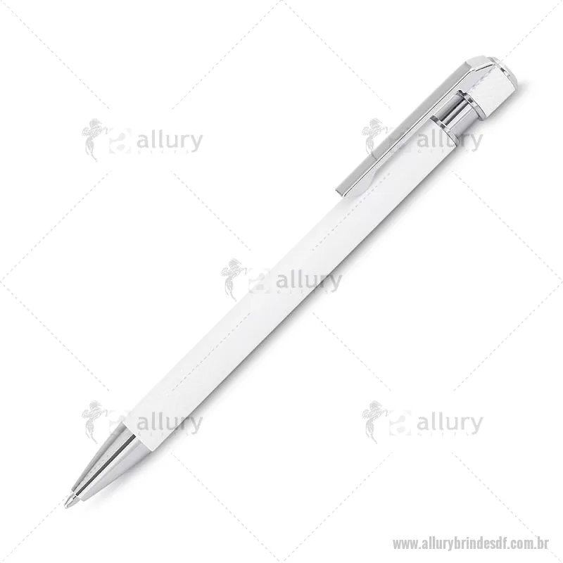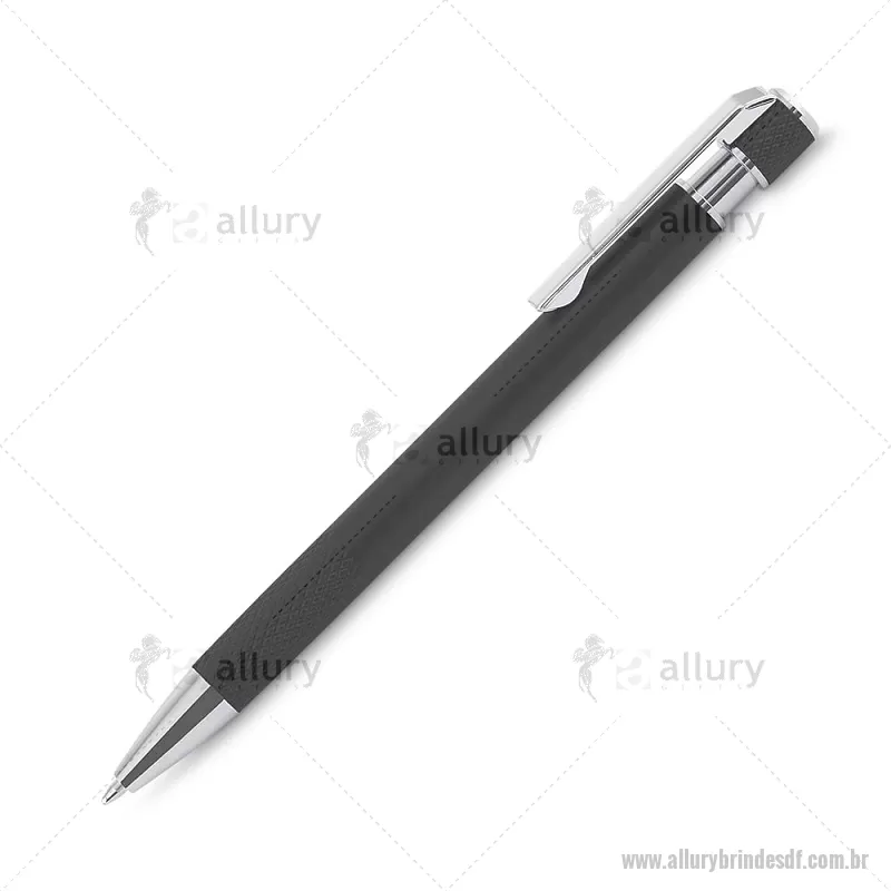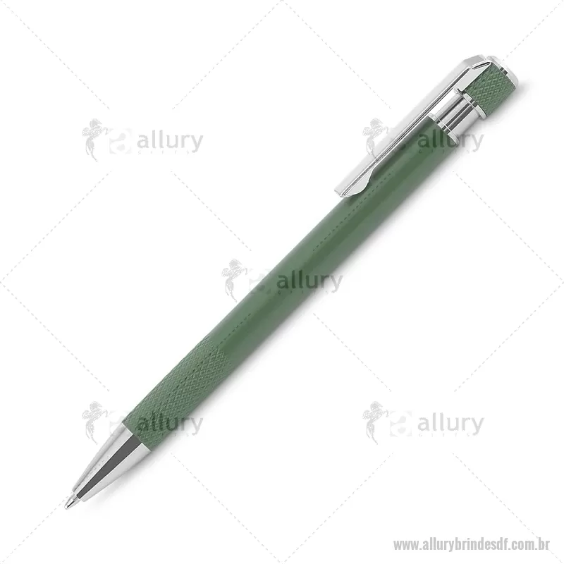 Caneta esferográfica com corpo em alumínio reciclado, acionador e clipe cromado, escrita em tinta azul. Refil substituível tipo Parker. Peso do Produto: 0,016kg Dimensão do Produto: 13,6xø0,9cm - - ALLDFCMT306