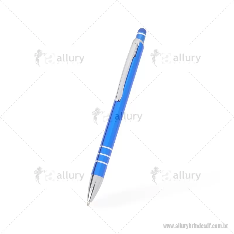 Caneta metálica com acionador touch, clipe metálico e ponteira plástica. Carga esferográfica azul 1.0mm e acionamento por clique. Largura : 1,4 cm x Comprimento : 14,4 cm Peso aproximado (g): 16 - - ALLDFCMT289