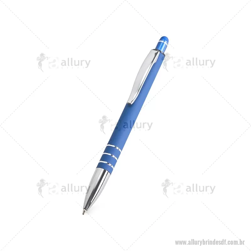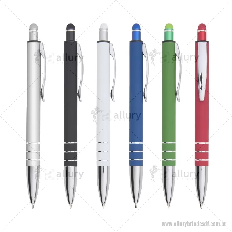 Caneta Metal Touch Caneta metálica touchscreen com acabamento emborrachado, acionamento por clique e carga esferográfica azul 1.0mm. Altura : 14,4 cm x Largura : 1,6 cm Peso aproximado (g): 18 - - ALLDFCMT292