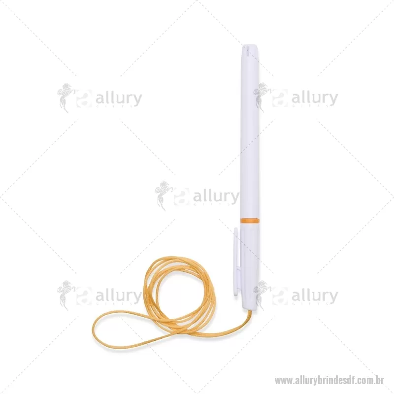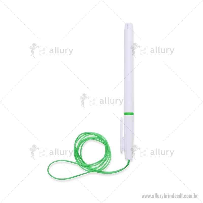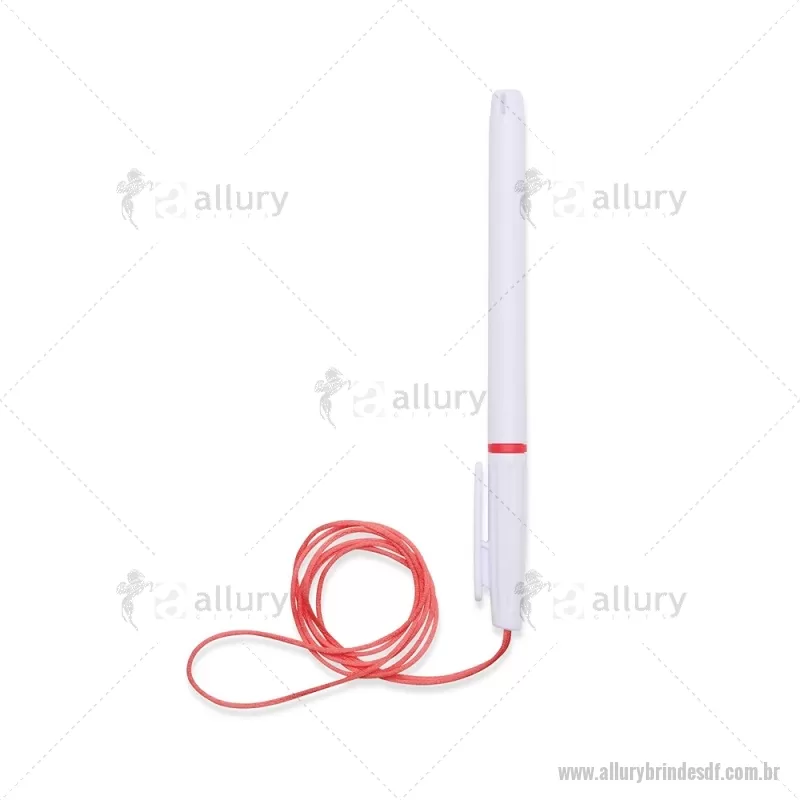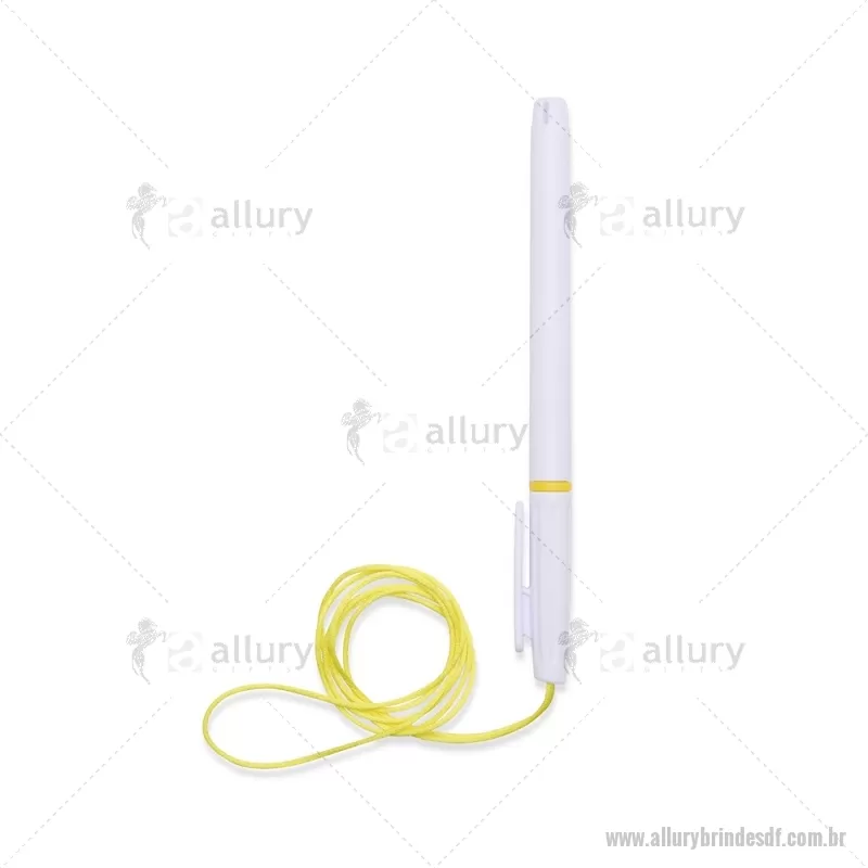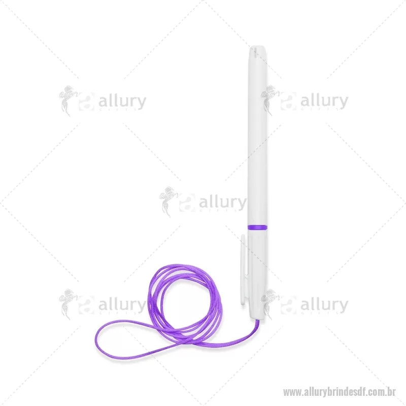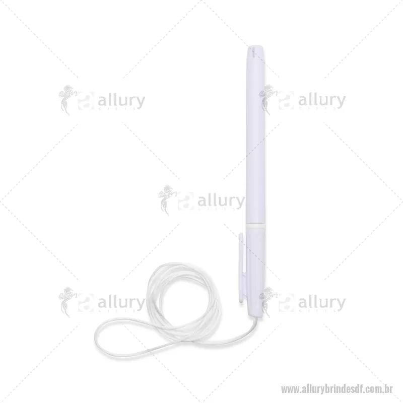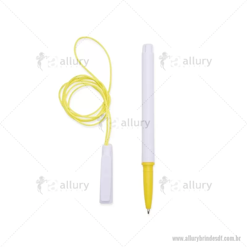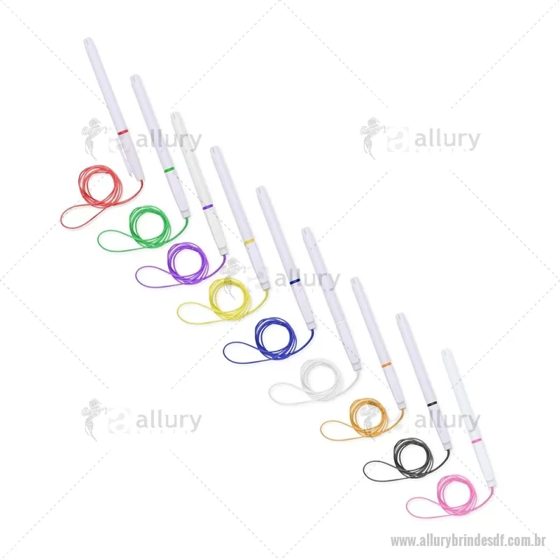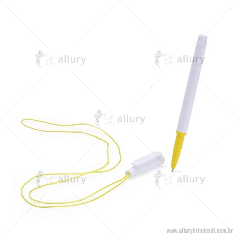 Caneta plástica com carga esferográfica azul 1,0 mm, acompanhada de cordão em nylon de 42 cm fixado na tampa. Leve e prática para uso diário. - - ALLDFCPL208