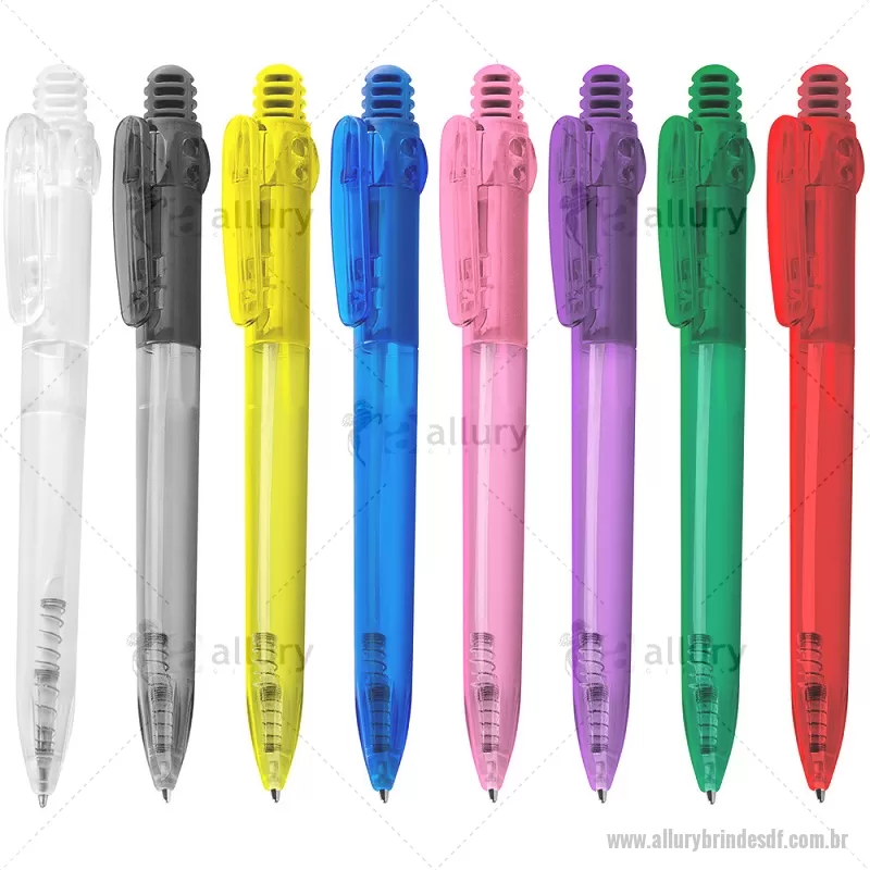 Caneta plástica translúcida esferográficaretrátil com grip, escrita azul e disponível em diversas cores. Confortável, funcional e ideal para ações promocionais. Peso do Produto: 0,008kg Dimensão do Produto: 13,7xø1,1cm - - ALLDFCPL207
