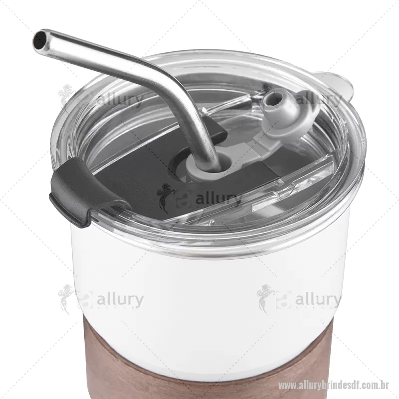 Copo em inox com Canudo Copo de parede simples em aço inox 304 com capacidade de 250ml, com canudo em inox. Tampa em plástico poliestireno (PS) que também possui um bico como forma alternativa de uso. Com pegador em fibra de noz. Possui acabamento externo com pintura fosca. Peso do Produto: 0,100kg Dimensão do Produto: 9xø7,5cm - - ALLDFCPO150