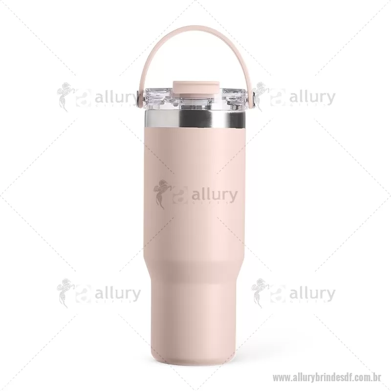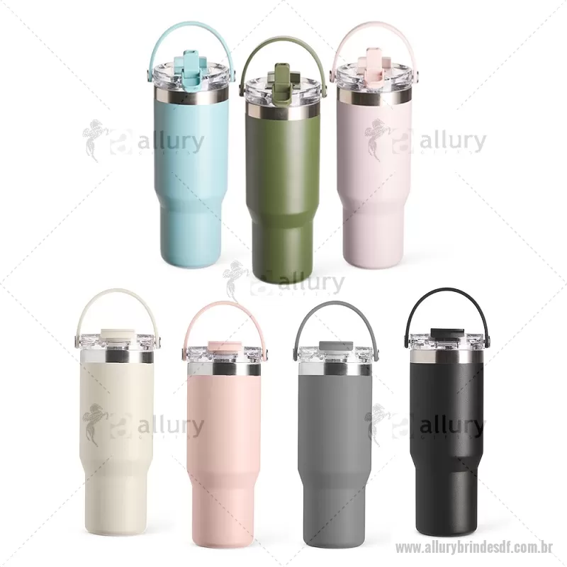 Copo térmico de 900 ml em aço inox com parede dupla, ideal para manter a temperatura de bebidas por mais tempo. Possui tampa plástica rosqueável com vedação a vácuo, proteção para o bocal, bico flip com canudo interno removível e alça para transporte. Conta com acabamento em pintura eletrostática, garantindo durabilidade e visual sofisticado. - - ALLDFCPO146