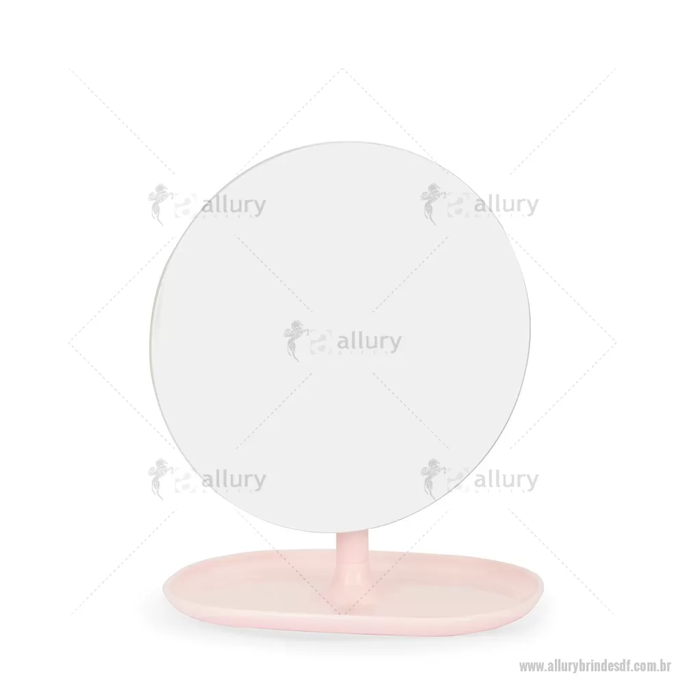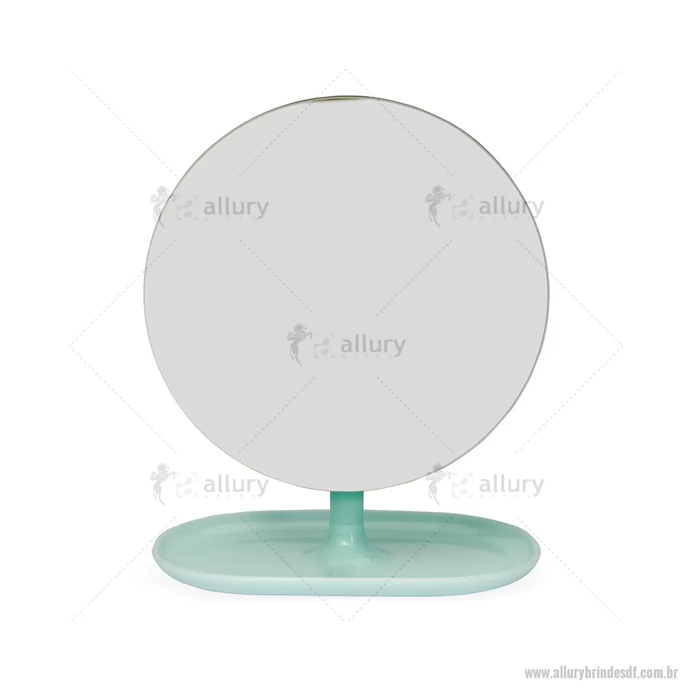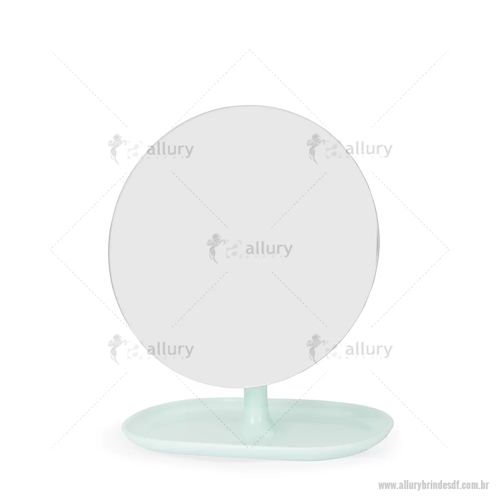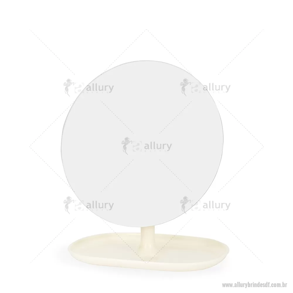 Espelho de Mesa Plástico Descrição: Espelho de mesa com estrutura compacta em plástico de fácil montagem. Conta com base fixa e pedestal giratório em 360 graus que permite ajuste prático em diferentes ângulos e posições. Altura : 25 cm x Largura : 10,7 cm x Comprimento : 15,8 cm Tamanho total aproximado (CxL): Diâmetro: 16 cm Peso aproximado (g): 195 - - ALLDFFEM118