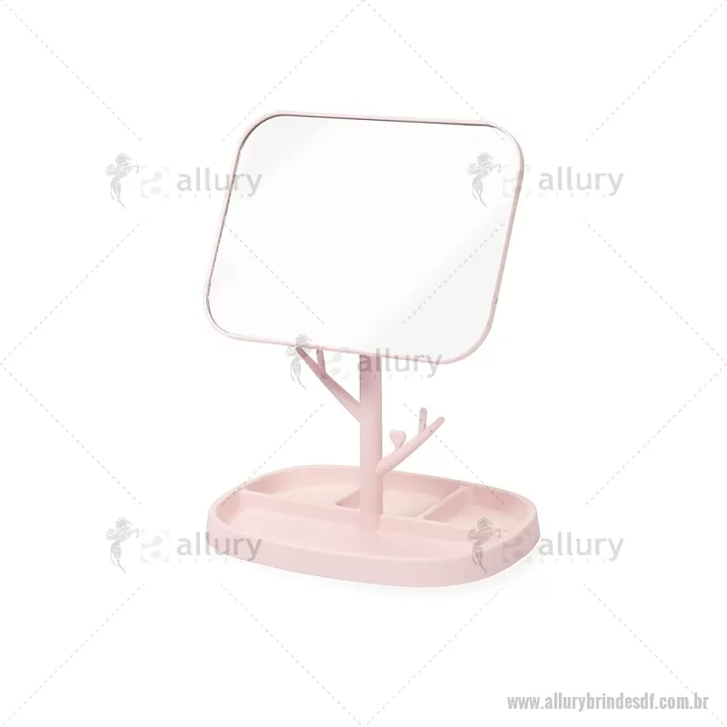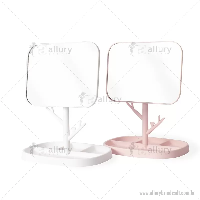 Espelho de Mesa Plástico retangular e estrutura fácil de montar feita em plástico. Conta com pedestal giratório que permite ajustar o espelho em diferentes ângulos e posições. Além disso, possui ganchos laterais e quatro divisórias na base para organizar objetos. Altura : 30 cm x Largura : 15,5 cm x Comprimento : 20,5 cm Peso aproximado (g): 277 - - ALLDFFEM120