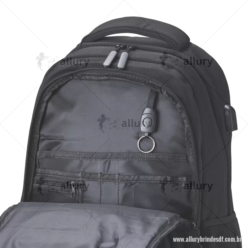 Mochila de Poliéster USB 28 litros com seis compartimentos, sendo o principal com bolso para notebook 15,6 e tablet 12,4. Com divisórias internas para acessórios e porta chave, a mochila possui adaptador USB externo, bolsos laterais telados, duas alças de mãos, área costada e alças para as costas com revestimento espumado. Altura : 43 cm x Largura : 31 cm x Profundidade : 15,5 cm Peso aproximado (g): 786 - - ALLDFMC248