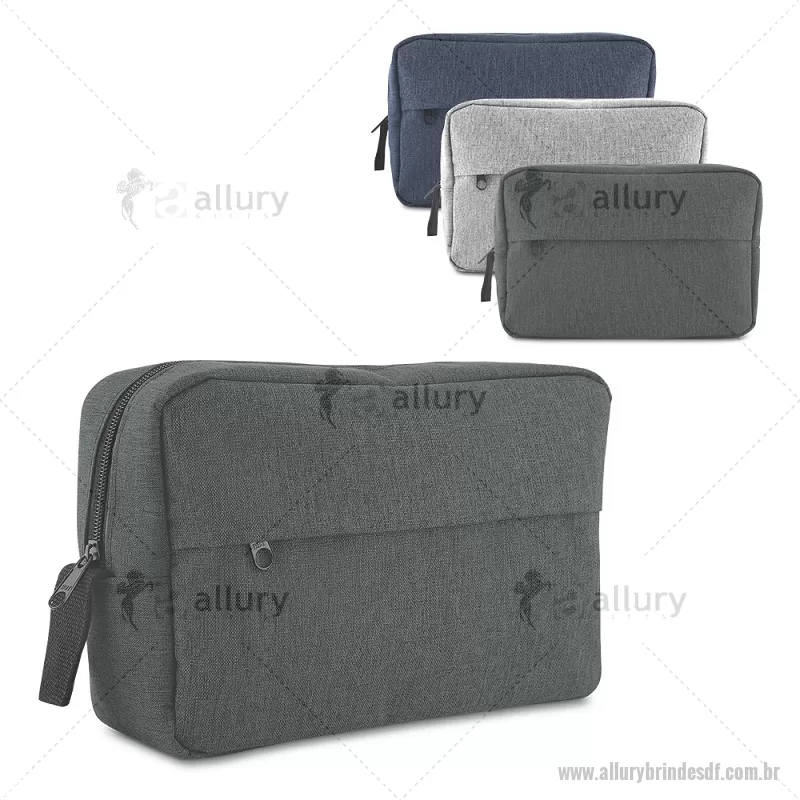 Nécessaire em poliéster 300D, equipada com alça para transporte e bolso frontal com fechamento em zíper. Compacta e prática para organizar pequenos itens do dia a dia. - - ALLDFNC145