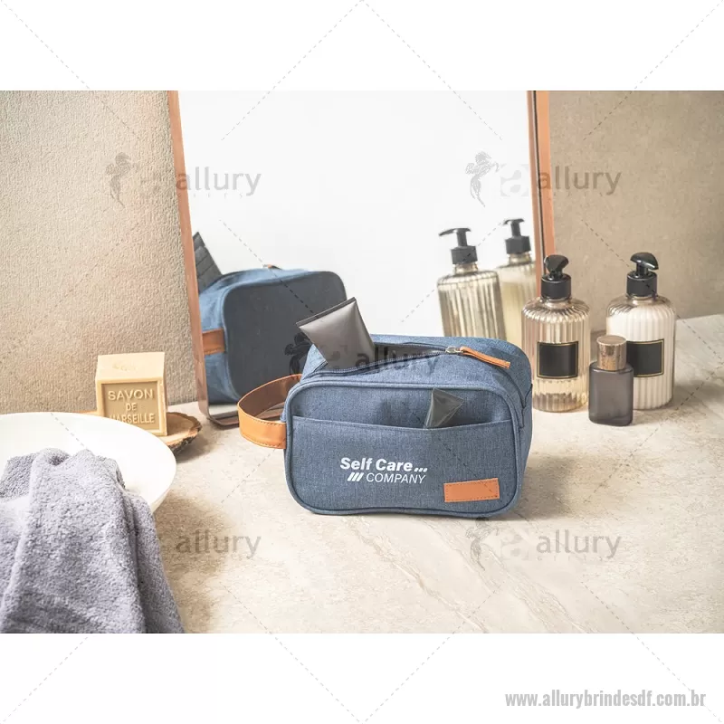 Nécessaire para cosméticos em 600D de alta densidade e pega em PU Bolsa de cosméticos em 600D de alta densidade e pega em PU. Contém bolso frontal com zíper e placa em PU. Medidas: 220 x 130 x 130 mm Peso do Produto (g.): 126 - - ALLDFNC142