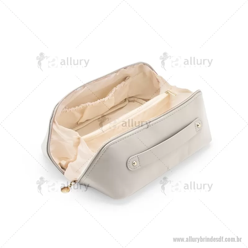 Nécessaire em (PU) poliuretano impermeável com abertura em 180 graus inspirada no formato de concha. O compartimento interno conta com dois bolsos laterais abertos e um, localizado na parte central, com fechamento em zíper. Possui alça para transporte. Altura : 11 cm x Largura : 22,5 cm x Profundidade : 9,5 cm Peso aproximado (g): 108 - - ALLDFNC143
