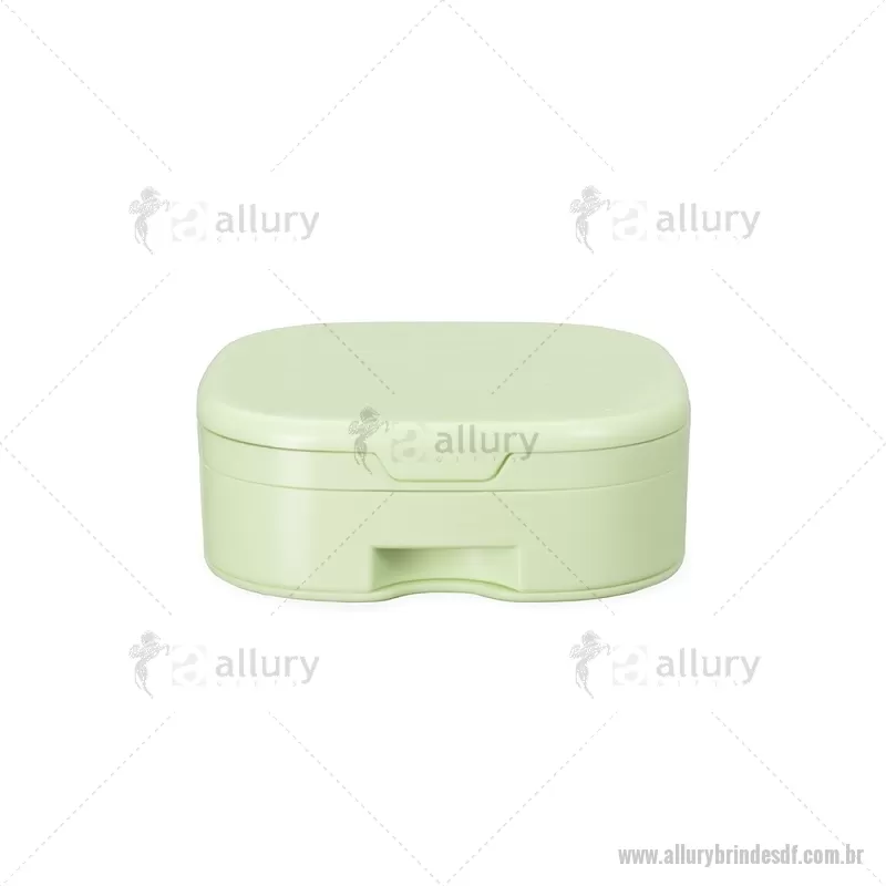 Porta-joias feito em plástico com espelho sem aumento na parte interna da tampa. Possui compartimentos internos de tamanhos variados e uma gaveta com três divisórias. Acompanha um pente compacto para cabelos. Altura : 3,5 cm x Largura : 9,9 cm x Comprimento : 9,9 cm Peso aproximado (g): 133 - - ALLDFFEM120