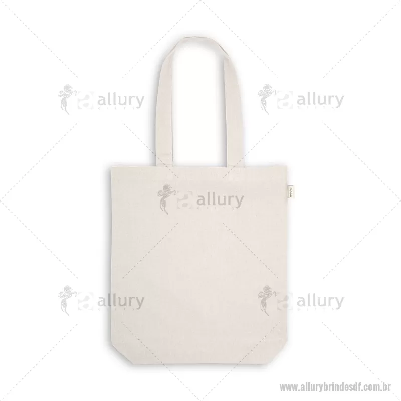 Sacola em 70% algodão reciclado e 30% poliéster reciclado (220g/m²), com alças de 65 cm. O tecido é sem tingimento, e utilizado na sua cor original, sem produtos químicos de tingimento ou branqueamento , contribuindo para um menor impacto ambiental. Medidas: 380 x 420 x 100 mm Peso do Produto (g.): 127 - - ALLDFSAC112