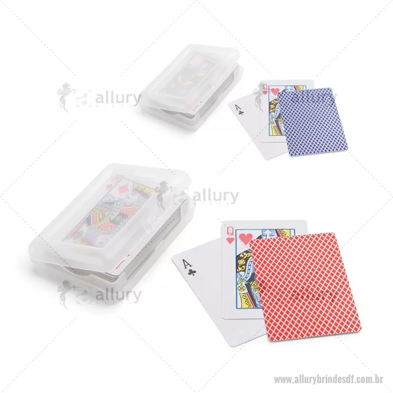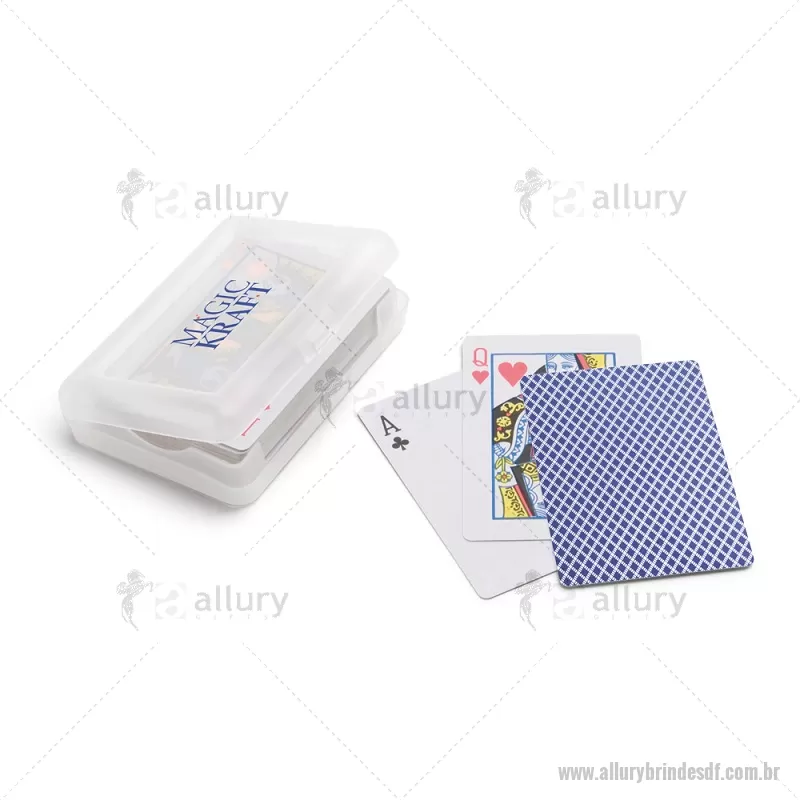 Baralho de 54 cartas em papel plastificado. Fornecido numa caixa rígida / estojo em PP. Medidas: 100 x 70 x 20 mm Peso do Produto (g.): 94 - - ALLDFJOG010