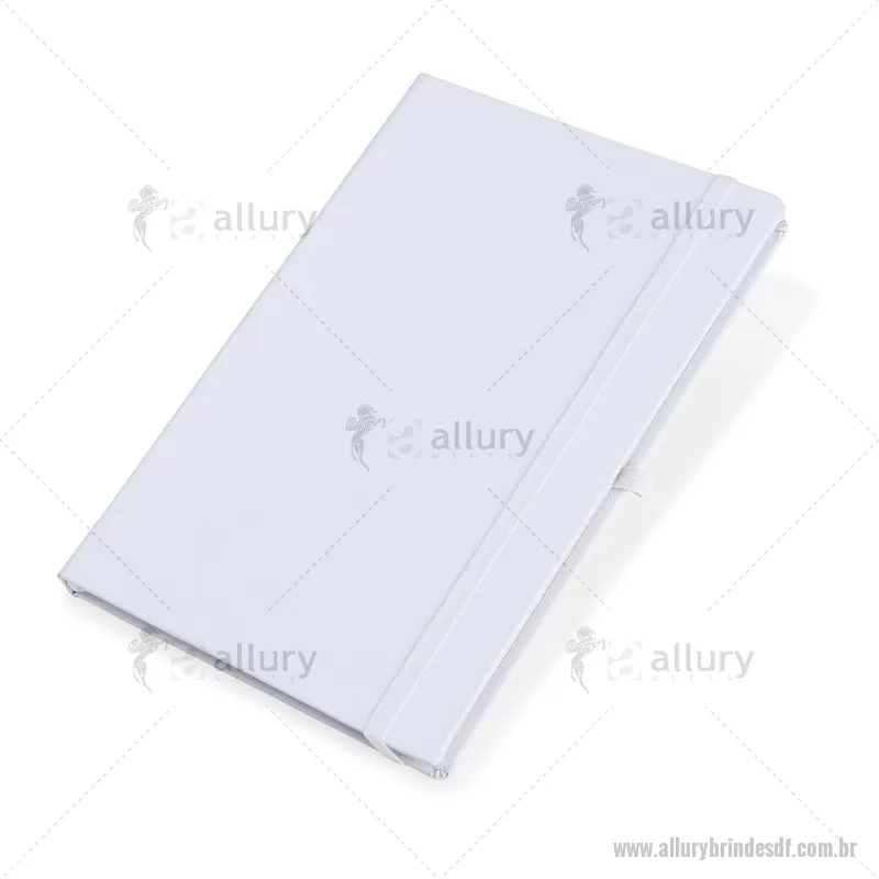 Caderneta em couro sintético com porta caneta, marcador de página em cetim e fita elástica para fechar. Contém aproximadamente 80 folhas com pauta. - - ALLDFBLC234