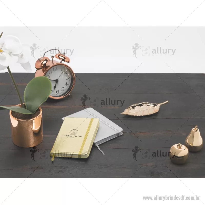 Bloco de anotações/ Caderno A5 com 80 folhas não pautadas em cor marfim, bolso interior, fita separadora, elástico e capa rígida de cor metalizada. 13,7 x 21,0 cm - - ALLDFBLC182