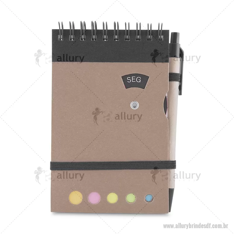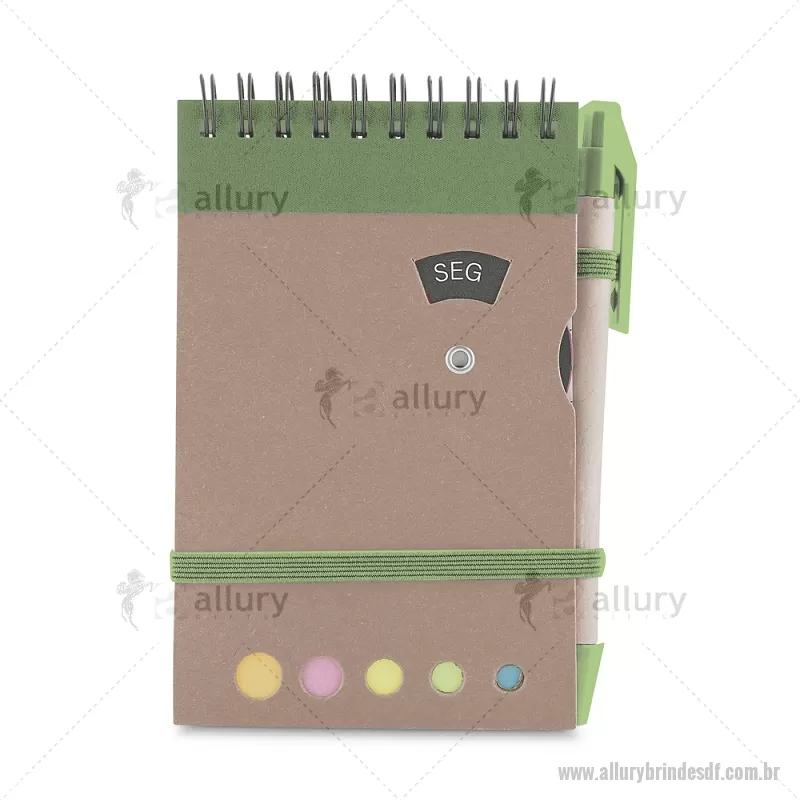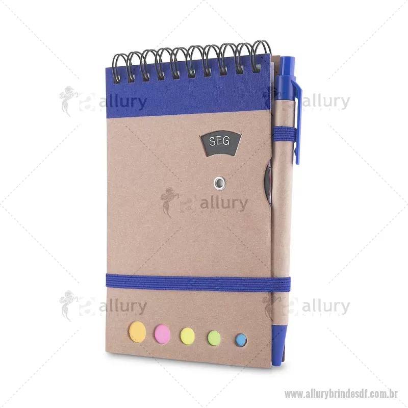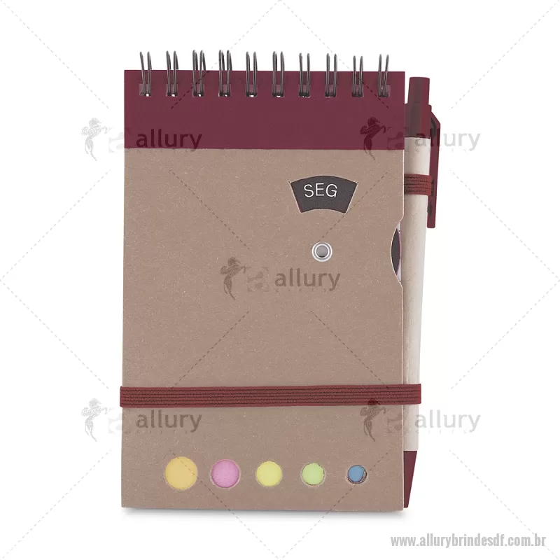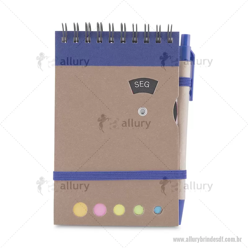 Mini caderno A6 com caneta com capa em papel kraft, com 70 folhas pautadas e blocos adesivos (sticky notes) coloridos. Acompanha disco rotativo na capa com os dias da semana e caneta produzida em papelão reciclado com detalhes em plástico e escrita em azul. Peso do Produto: 0,088kg (Caderno) Peso do Produto: 0,004kg (Caneta) Dimensão Produto: 14,5x9cm (Caderno) Dimensão do Produto: 3,6xø0,9cm (Caneta) - - ALLDFBLC275