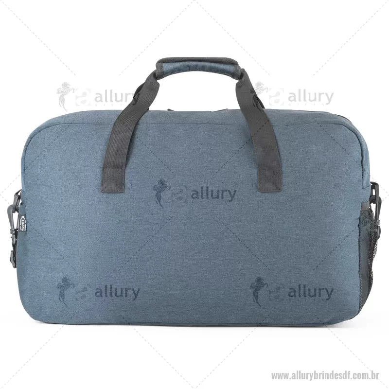 Bolsa esportiva em rPET 600D com interior forrado e fundo com placa semi-rígida. Compartimento principal e bolso frontal com fecho e dois bolsos laterais, um em rede e outro com fecho. A bolsa tem alça de ombro removível e ajustável em webbing com reforço almofadado. 500 x 300 x 230 mm - - ALLDFBOL025