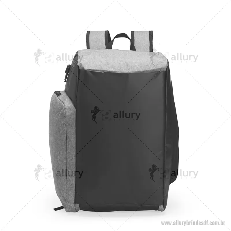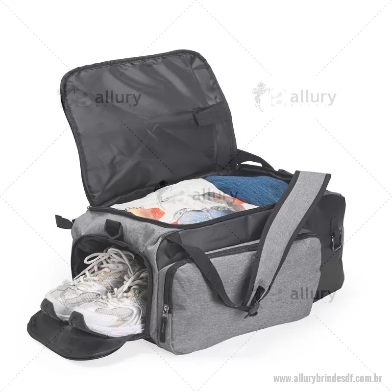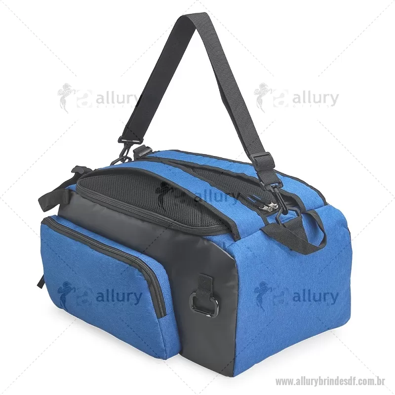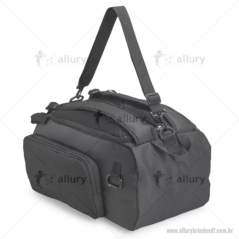 Bolsa esportiva em poliéster resistente à água, com detalhes emborrachados e capacidade de até 40 litros. Possui três compartimentos principais, incluindo bolso para notebook de até 13” e espaço separado para calçados. Conta com bolso lateral em malha, alça transversal ajustável e removível, além de alças acolchoadas e área traseira com espuma respirável, permitindo uso como mochila. - - ALLDFBOL050