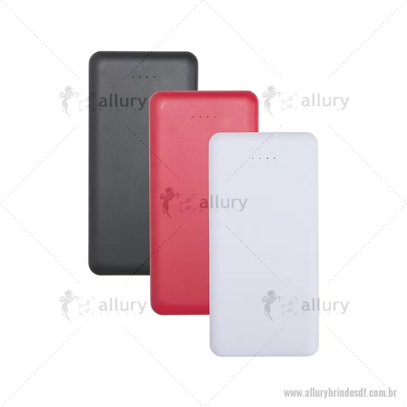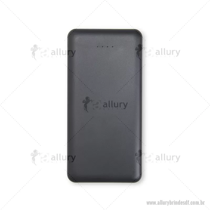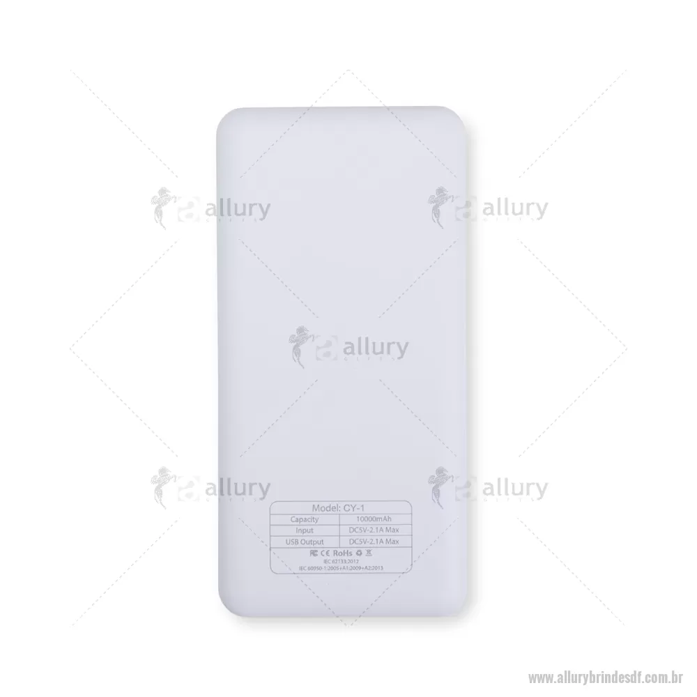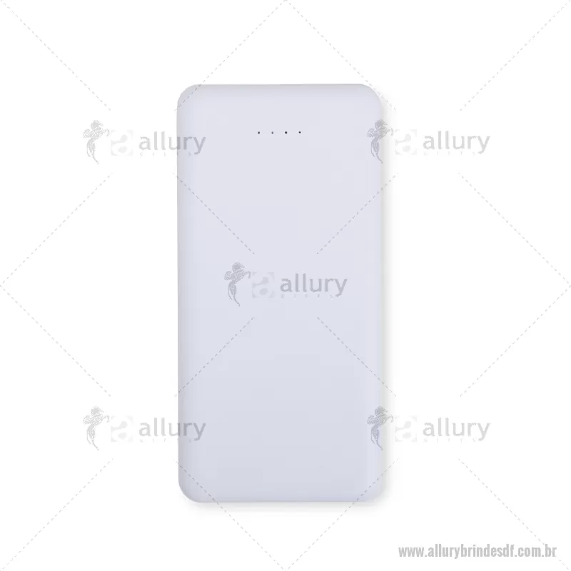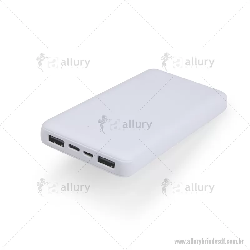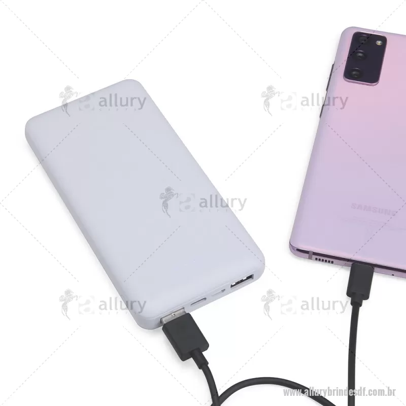 Power Bank 10.000mAh com Indicador LED Descrição: Power bank com estrutura em plástico com potência de 10.000mAh e quatro luzes de LED para indicar o status de carga do próprio carregador portátil. Possui quatro entradas diferentes: duas portas USB, uma porta Micro USB e outra USB-C. Altura : 14 cm x Espessura : 1,5 cm x Comprimento : 7 cm Peso aproximado (g): 243 - - ALLDFTEC531