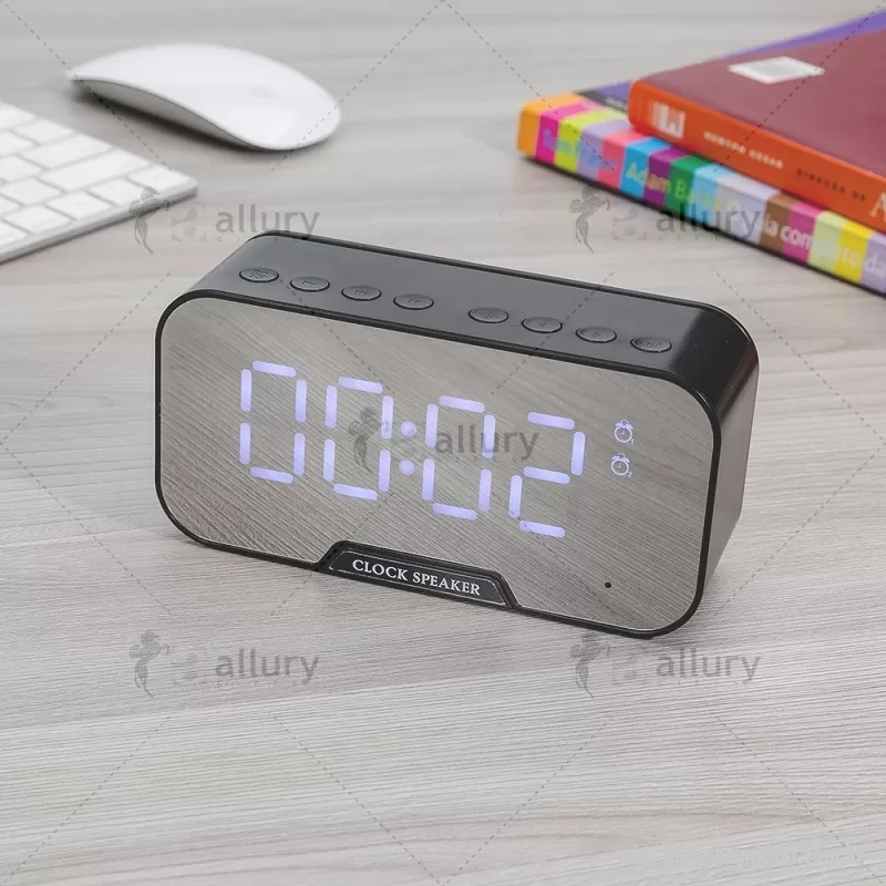 Caixa de Som Multimídia com Relógio despertador e Suporte para Celular. Produzida em plástico e com borrachas antiderrapantes na área inferior, a caixa de som tem a área frontal espelhada e display de LED, além de um compartimento com suporte para celular – uma espécie de “gaveta” aonde é exibido (CLOCK SPEAKER), basta puxá-la ter acesso ao compartimento. A caixa de som executa nos modos bluetooth, rádio FM, cartão TF-microSD (até 16GB) e entrada auxiliar P2. Acompanha cabo USB e manual em inglês. Medidas: Altura : 6,8 cm x Largura : 4,6 cm x Comprimento : 13,8 cm Peso aproximado (g): 322 Material: Plástico e Borracha Bluetooth: V 5.0 Frequência de resposta: 80Hz-20KHz Frequência de rádio: 87.5MHz-108MHz Bateria: Lithium 3.7V com 1400mAh Distância de alcance: 10 metros Voltagem: DC 5V Falante: 4Ω3W SNR: ≥65db Distorção: <0,5% - - ALLDFTEC384