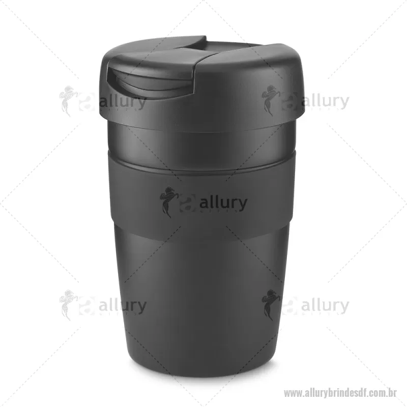 Caneca em aço inox parede dupla, conserva temperatura, pegador em silicone e bico com tampa. Capacidade 350ml. - - ALLDFCPO074