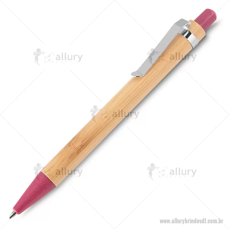 Caneta corpo de bambu com detalhes em plástico e metal. Acompanha estojo de papel bambu print. - - ALLDFCPECO067