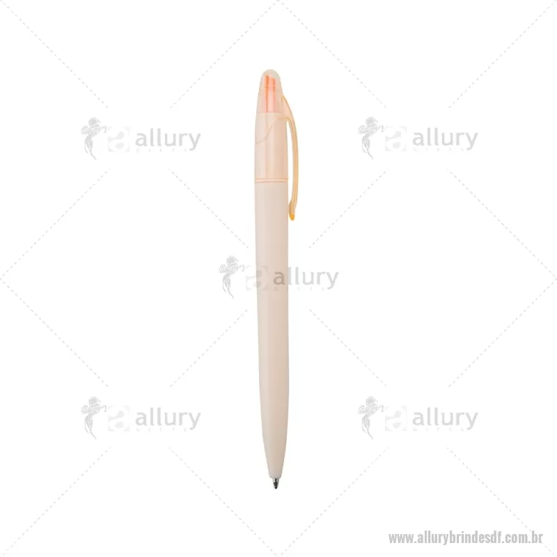 Caneta plástica com marca texto com tampa protetora para o marca texto, carga esferográfica azul 1.0mm e acionamento por rotação. - - ALLDFCTX037