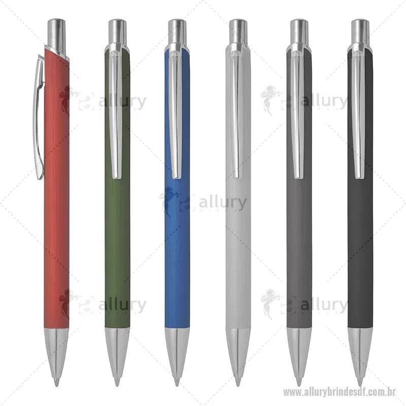 Caneta de metal com detalhe escovado no corpo e acionamento por click. Gravação a Laser. Consultar cores disponíveis. - - ALLDFCMT099
