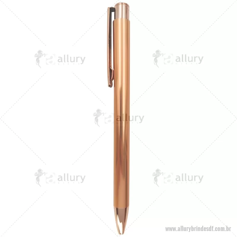 Caneta em metal com acabamento brilhante, somente na cor prata acabamento fosco, acionamento por clique, com carga azul. Dimensões | 14,1cm - - ALLDFCMT236