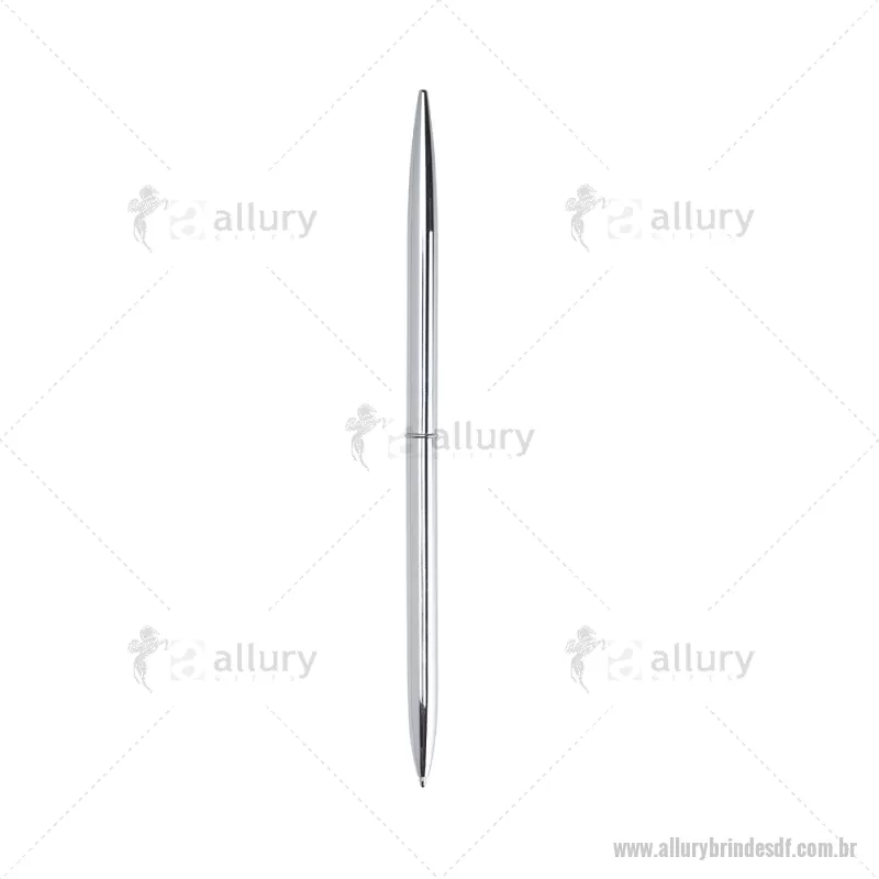 Caneta metálica com acionamento por rotação e carga esferográfica azul 1mm. - - ALLDFCMT248