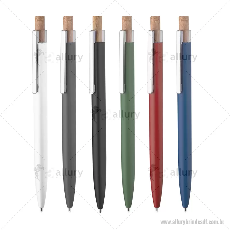 Caneta esferográfica em alumínio reciclável com escrita em azul. Refil parker e acionador em bambu. - - ALLDFCMT252