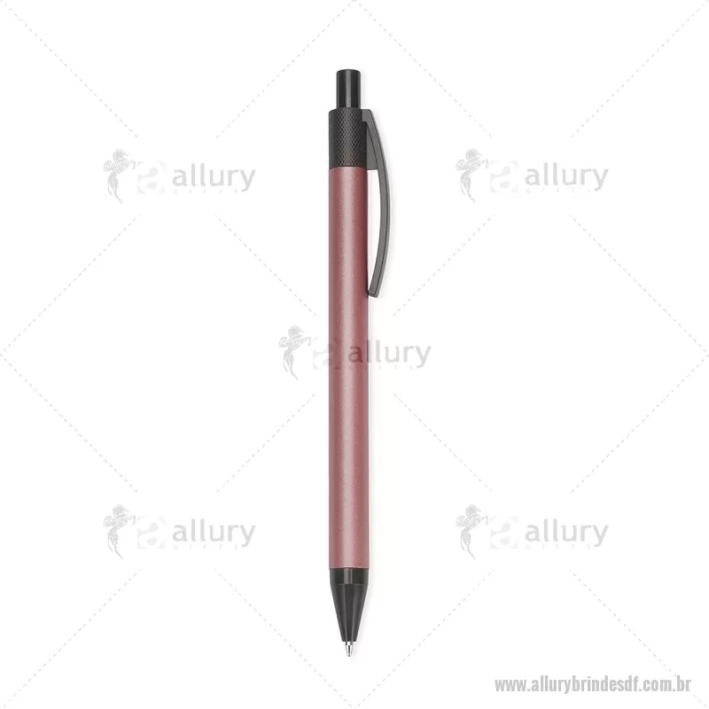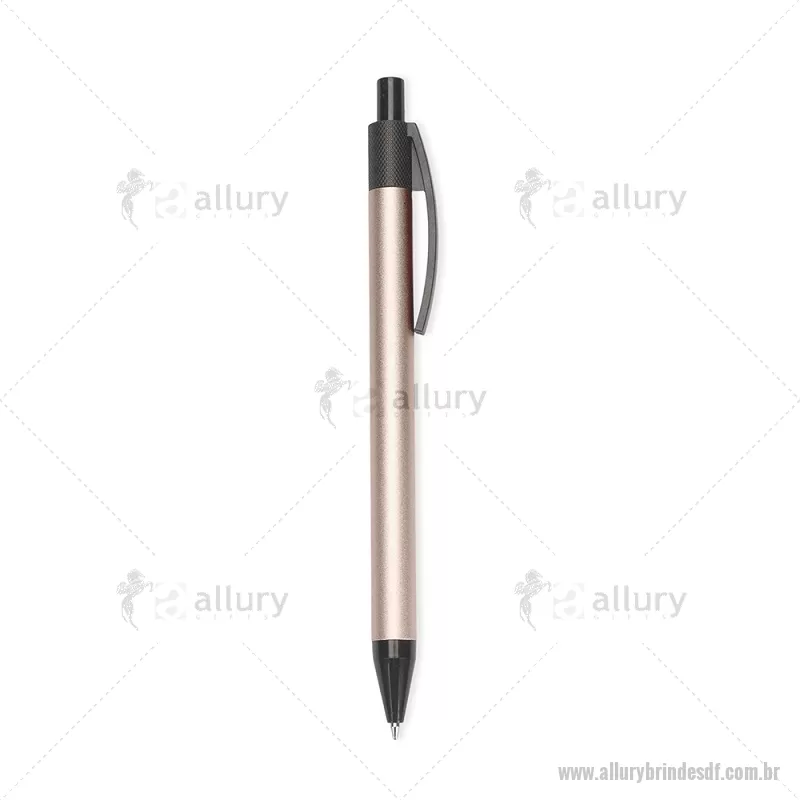 Caneta com corpo em metal, ponteira e clip em plástico, equipada com acionamento por clique. Possui carga esferográfica azul de 1,0 mm, garantindo escrita suave, leve e precisa para o uso diário. - - ALLDFCMT301