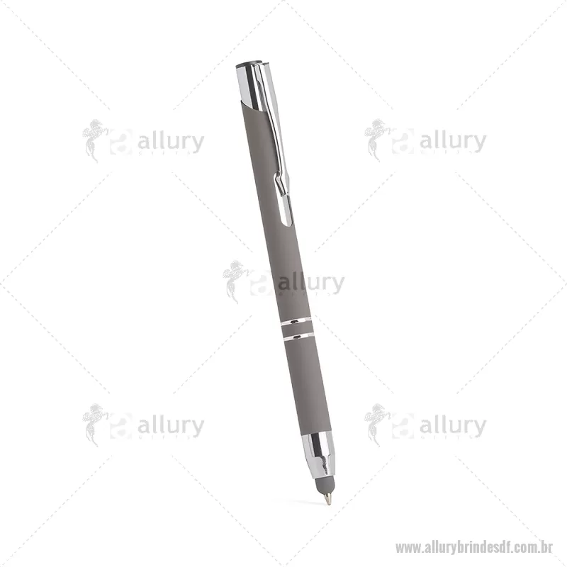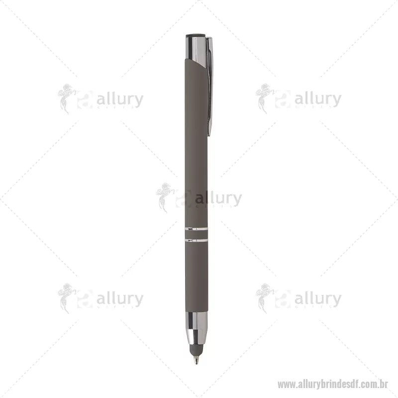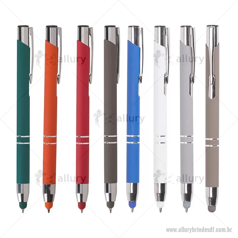 Caneta esferográfica com tinta azul 1,0 mm, acionamento por clique e corpo metálico. Conta com ponteira emborrachada touch, ideal para uso em smartphones, tablets e outros dispositivos com tela sensível ao toque, unindo funcionalidade e praticidade no dia a dia. - - ALLDFCMT302