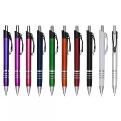 Caneta em plástico transparente, click retrátil e clipe. Consultar cores disponíveis. Gravação em Silk Screen. - - ALLDFCPL067