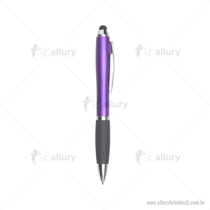 Caneta plástica com touch screen, acionamento por rotação e carga esferográfica azul 1mm. - - ALLDFCPL202