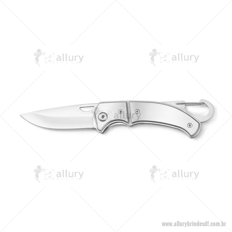 Canivete em aço inox e metal com fecho de segurança e clipe. Fornecido em caixa presente. Medidas do produto: 97 x 15 x 29mm | Caixa: 110 x 37 x 20 mm - - ALLDFCVT028