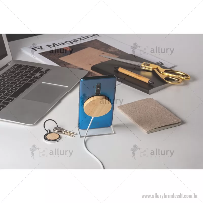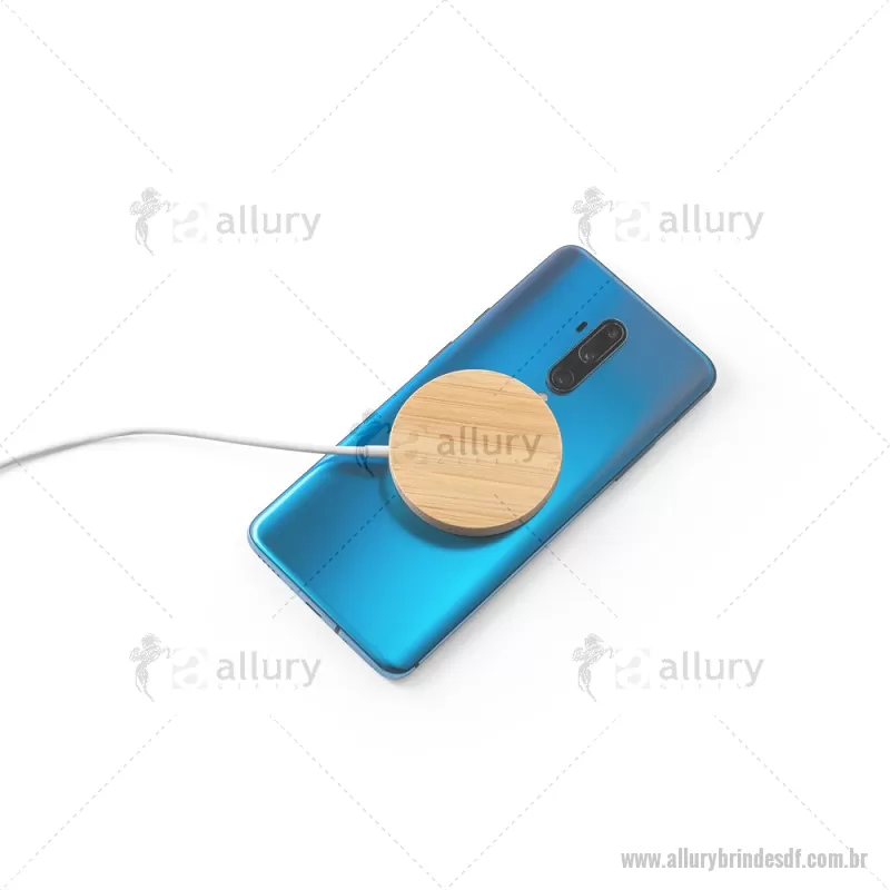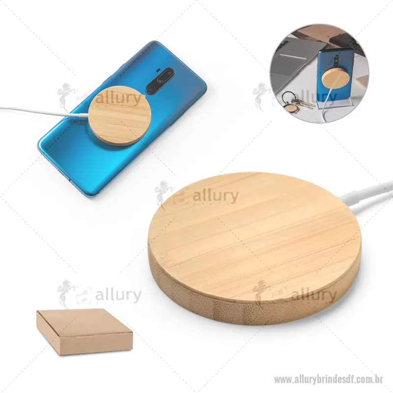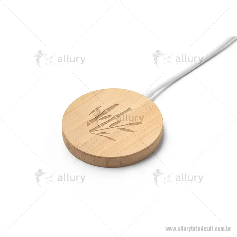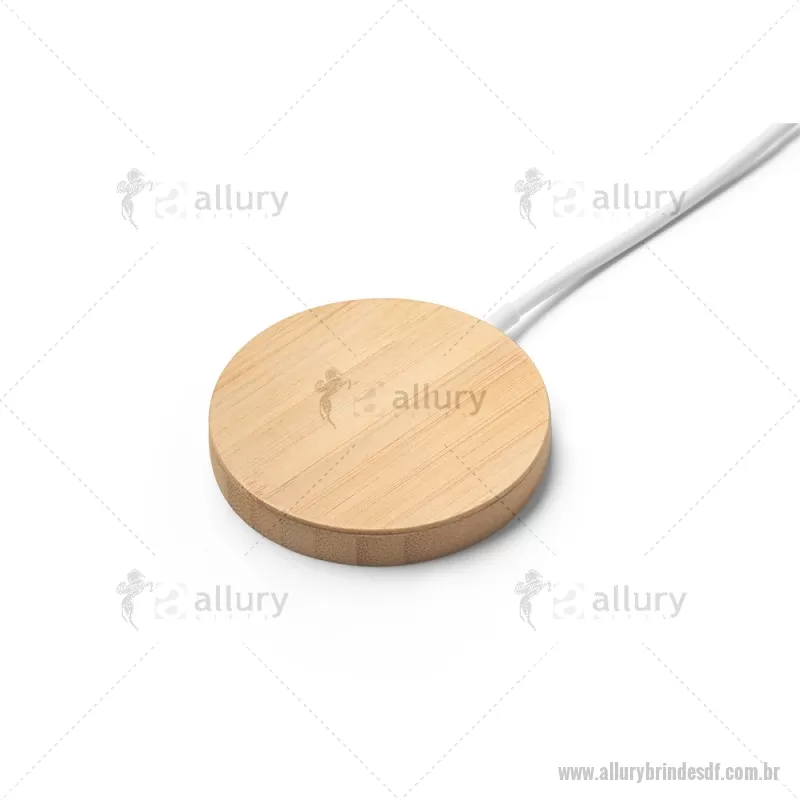 Carregador magnético por indução super-rápido em bambu 15 W Carregador magnético por indução (wireless) super-rápido em bambu. Potência de carregamento super-rápido de 15W. Incluso cabo de carregamento USB-C de 1 metro. Compatível com dispositivos móveis com tecnologia de carregamento sem fios. Fornecido em caixa presente de papel kraft reciclado. A cor e o resultado da impressão nos materiais naturais pode variar entre produtos. Medidas Produto: Ø59 x 8 mm Peso do Produto (g.): 35 - - ALLDFTEC533